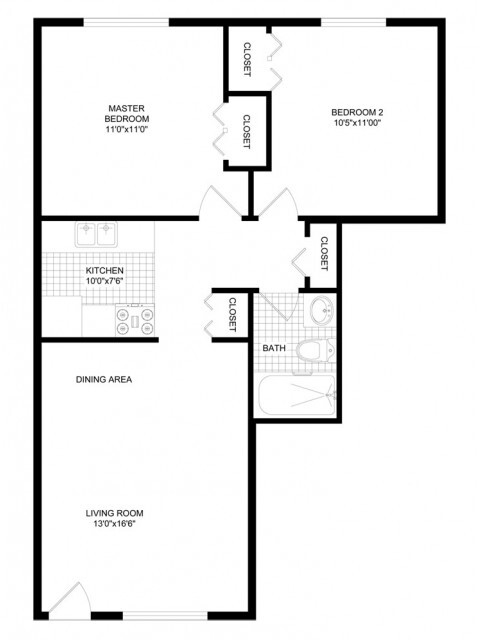 2 Beds, 1 Bath, 722 sq ftLargest 2 BedroomThis is the largest 2 Bedroom at this PropertyModel Gallery