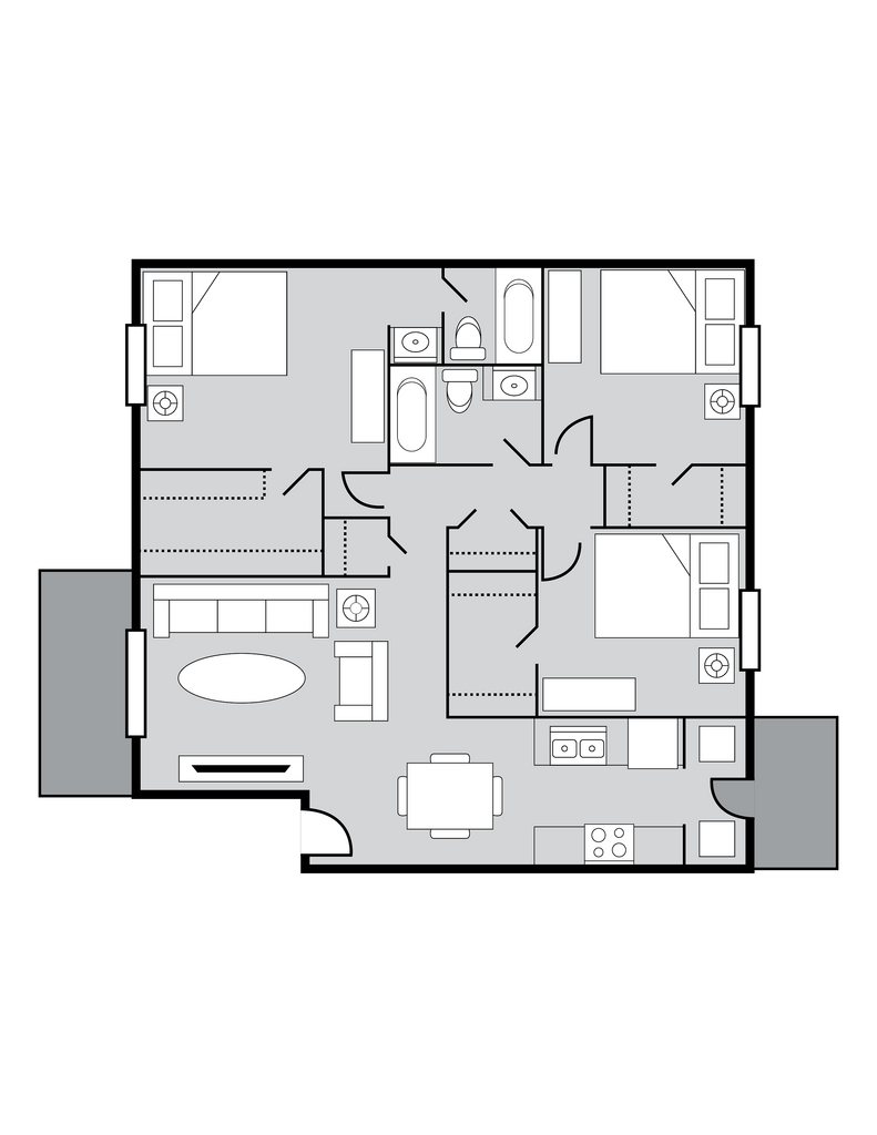 B1R - Floorplan 1 Apartment Unit: 404Apartment Model: B1R2 Bedroom, 2 Bath, 906 sq ftAvailable NowApartment Unit: 405Apartment Model: B1R2 Bedroom, 2 Bath, 906 sq ftAvailable NowApartment Unit: 814Apartment Model: B1R2 Bedroom, 2 Bath, 906 sq ftAvailable NowFloorplan B1