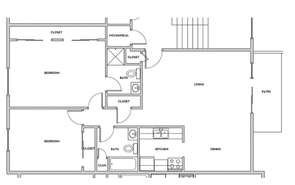 1 Bedroom 1 Bath - Floorplan 5 2 Bedrooms
