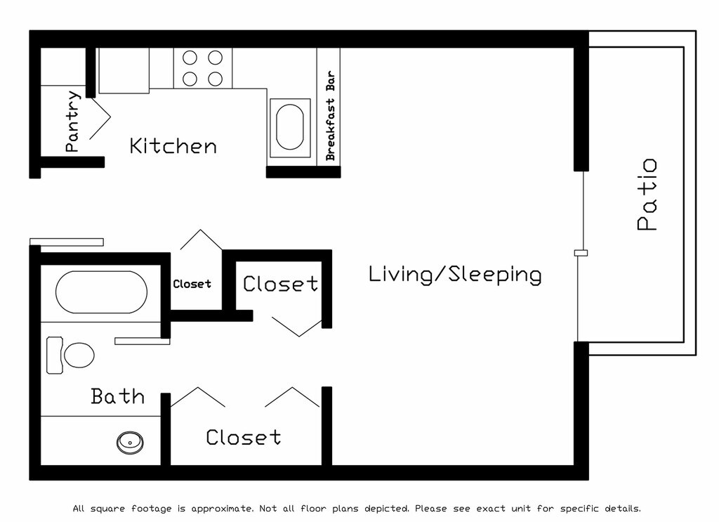 Availability Date Unit Sq Ft Call for Availability Remodeled Studio 430 sq ft Model Amenities and Features