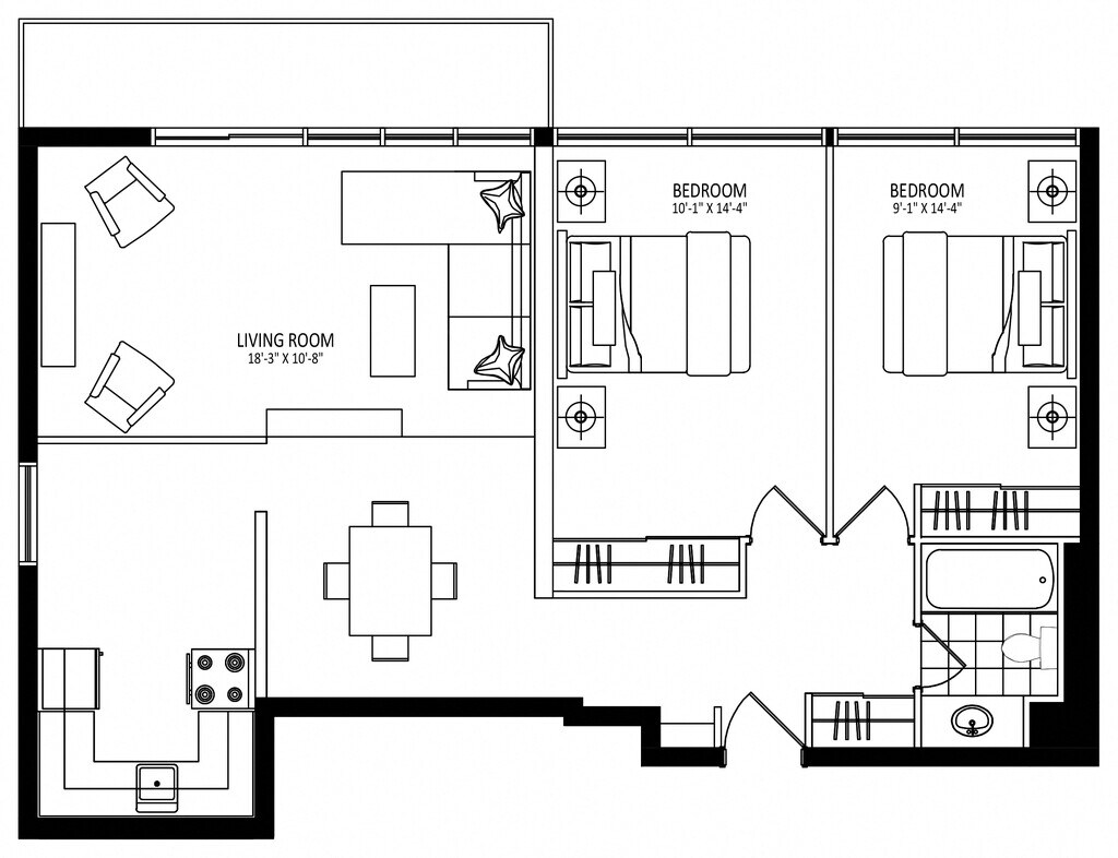 2 Beds, 1 Bath, 905 sq ftAvailable NowModel Gallery