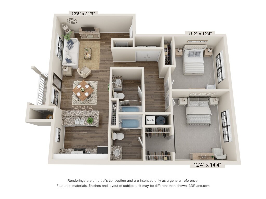 2 Beds, 2 Baths, 1116 sq ftLargest 2 BedroomThis is the largest 2 Bedroom at this PropertyModel Gallery