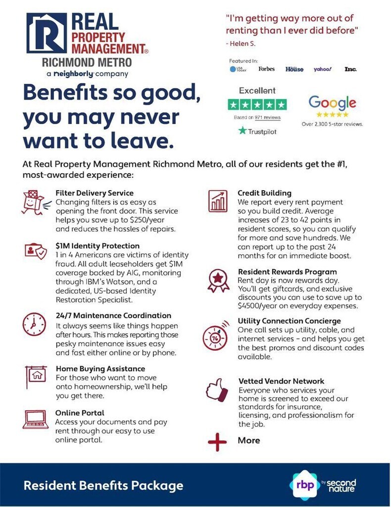 Forest Square Apartments is centrally located near I-95, and are in close proximity to Forest Hill Park and James River Park. We offer spacious two bedroom/one bath, laundry facility on-site, and off-street parking. Water/Sewer/Trash is included/ Pet Friendly. Apply Today! The Real Property Management Richmond Metro Resident Benefit Package is designed to provide convenience, professional services, and cost savings to our residents. By applying, Resident(s) agree to be automatically enrolled in the program and agrees to pay an additional $45 per month, payable with rent. This program includes: - HVAC filter delivery every 90 days, which will help you save up to 15% on monthly heating & cooling bills (where applicable) - $1M Identity Protection, coverage backed by AIG - 24/7 online maintenance reporting aimed at making reporting those pesky maintenance issues easy and timely - Home buying assistance for when the time is right to buy your "forever" home - Access to your account and documents through our easy-to-use online portal with One-click payment options to stay up to date on rent, utilities, and more - Credit reporting to help boost your credit score with timely rent payments! -Resident Rewards Program, receive gift cards, and excusive discounts when you pay rent on time - Utility concierge services to help make sure you get the best value on your utilities and conveniently activate utility, cable, and internet services - Vetted Vender Network, everyone who services your home is screened for insurance, licensing, and professionalism for the job Non-refundable $60 application fee for all applicants 18 or older to apply and $250 lease administration fee due at lease signing. Security Deposit Alternative Offered. Pets considered on a case-by-case basis. If you have a pet, you will be required to pay a non-refundable $250.00 Pet Administration Fee per pet due at Lease signing. In addition to this fee, you will also have monthly pet admin fees per pet. (5 Paws - $25.00/month, 4 Paws - $30.00/month, 3 Paws - $40.00/month, 2 Paws - $50.00/month, 1 Paw - $75.00/month). THIS IS A REQUIRED PART OF THE APPLICATION PROCESS FOR ALL APPLICANTS. Real Property Management - Richmond Metro adheres to all fair housing laws and regulations