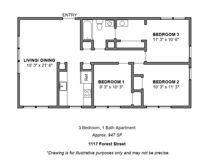 3 Beds, 1 Bath, 924 sq ftAvailable NowAvailability Details