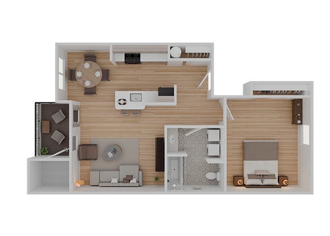 1 Bed, 1 Bath, 728 sq ftAvailable NowModel Gallery