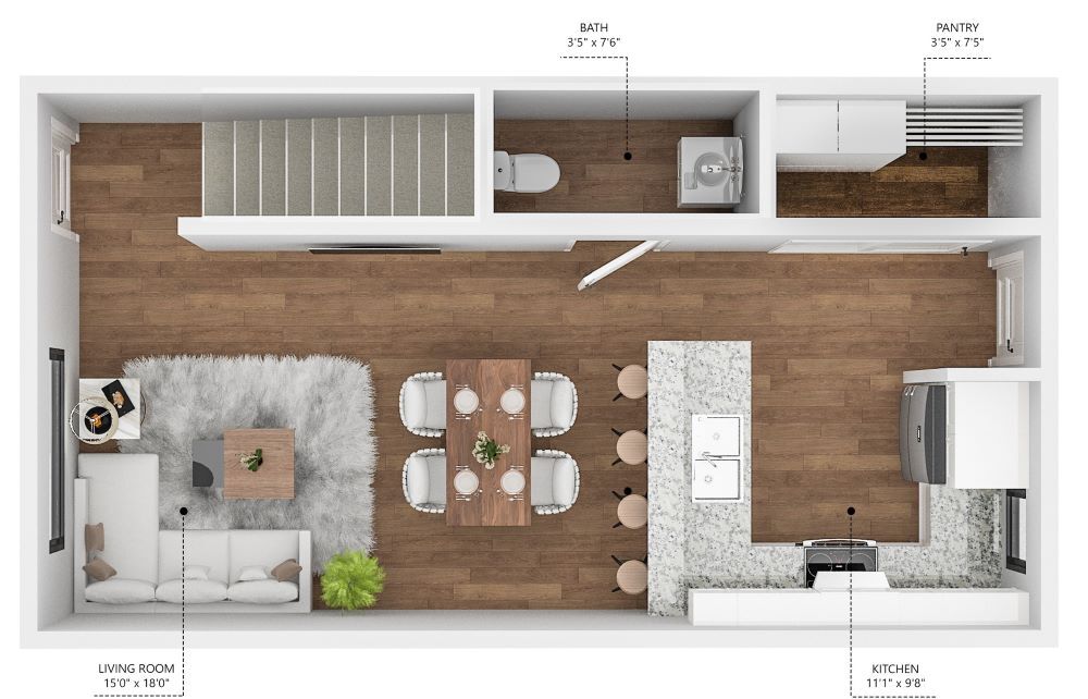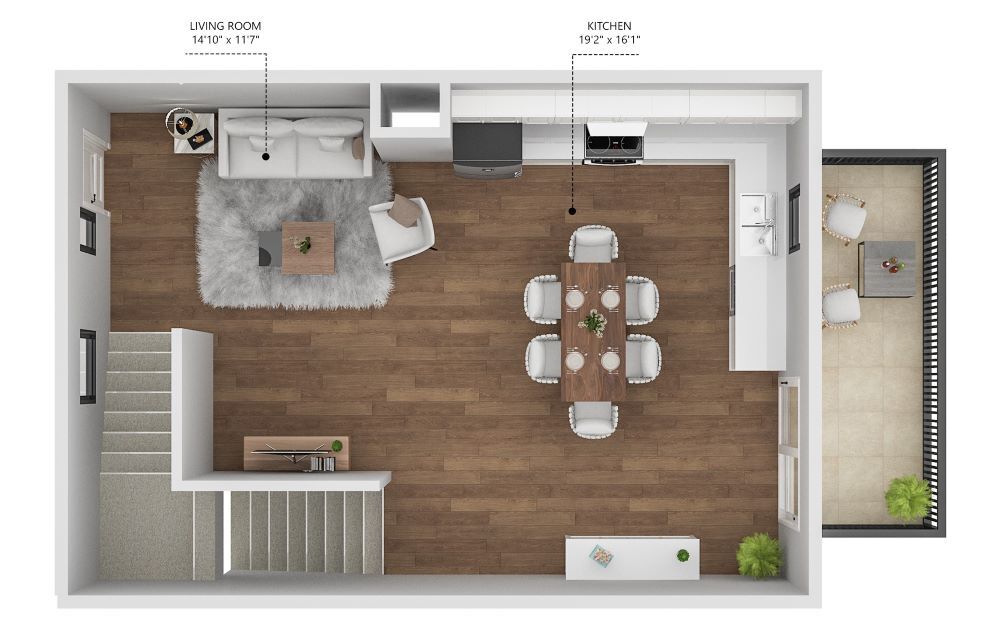 Apartment Model: B1 - Cobalt - TownhomeFrom $1,1612 Bedroom, 1.5 Bath, 790 sq ftAvailable Now![]()