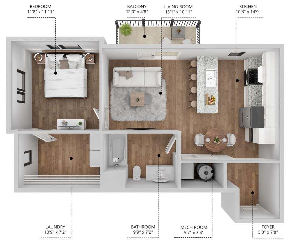 1 Bed, 1 Bath, 717 sq ftAvailable NowModel Gallery
