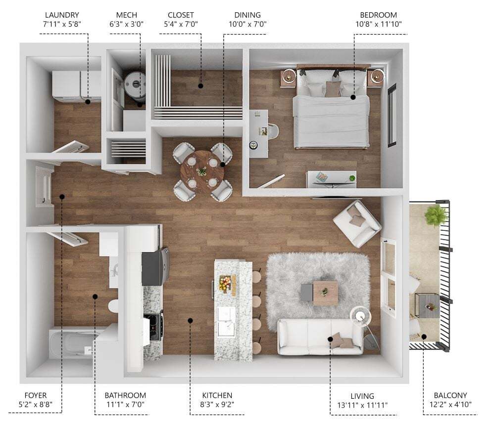 Apartment Model: A2From $1,2011 Bedroom, 1 Bath, 717 sq ftAvailable Now![]()