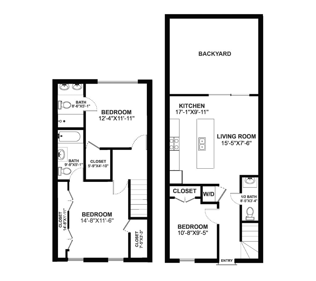 2 Beds, 1.5 Baths, 1795 sq ftAvailable NowLargest 2 BedroomThis is the largest 2 Bedroom at this PropertyModel Gallery