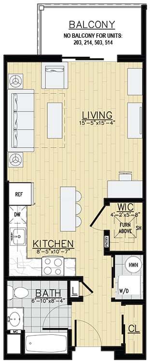 B4 - Floorplan 1 Apartment Unit: A208Apartment Model: B4$2,7951 Bedroom, 1 Bath, 675 sq ftAvailable November 8, 2025Floorplan B1