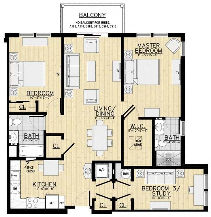 Apartment Model: B3From $2,8951 Bedroom, 1 Bath, 766 sq ftAvailable Now![]()