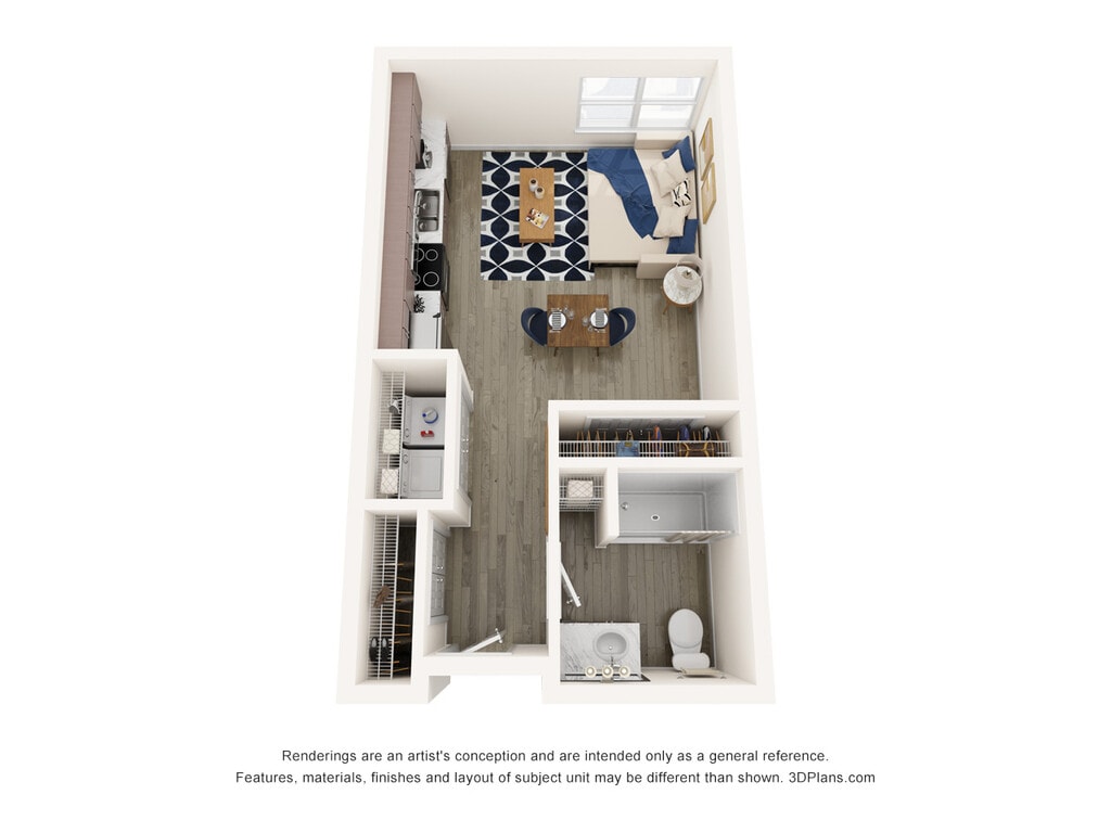 Apartment Model: StarlingCall For RatesStudio, 1 Bath, 520 sq ftUnavailableStarling - Floorplan 1 1 Bedroom