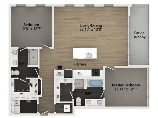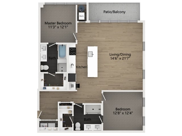 1 Bed, 1 Bath, 1126 sq ftAvailable NowLargest 1 BedroomThis is the largest 1 Bedroom at this PropertyModel Gallery