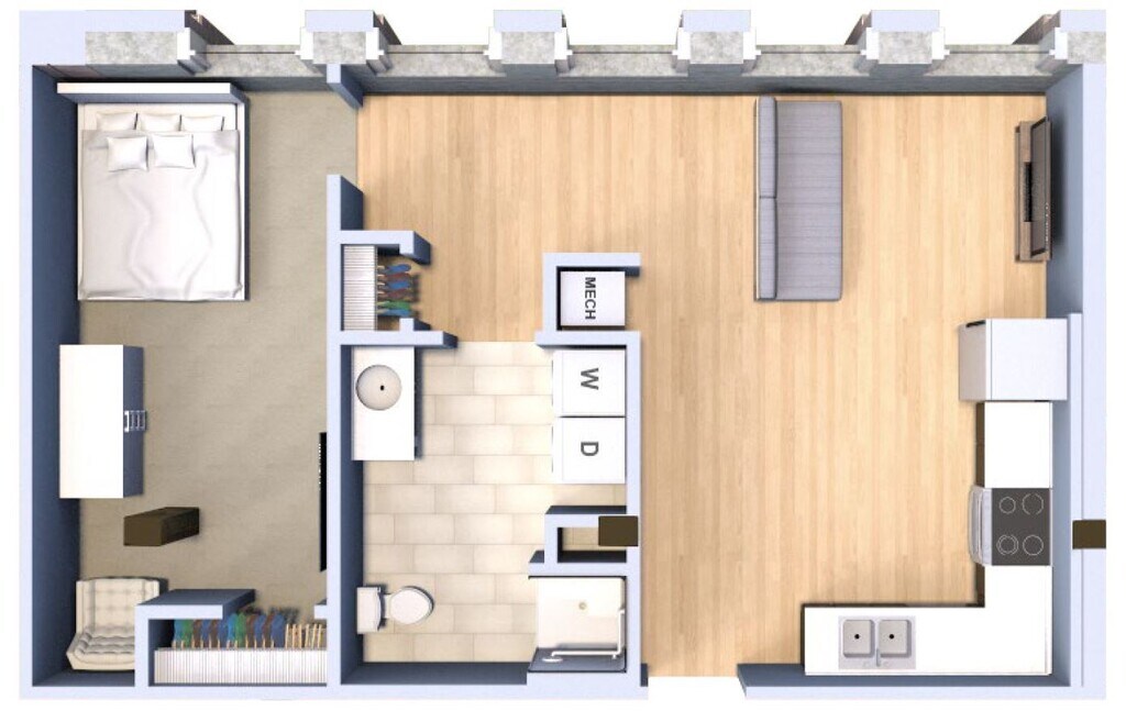Style 17 - Floorplan 1 Apartment Unit: 317Apartment Model: Style 17$1,5501 Bedroom, 1 Bath, 533 sq ftAvailable NowStyle 18