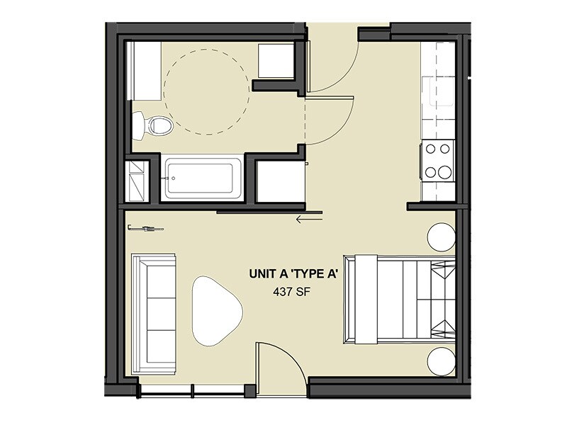 Apartment Model: Unit BFrom $1,199Studio, 1 Bath, 394-397 sq ftAvailable Now![]()