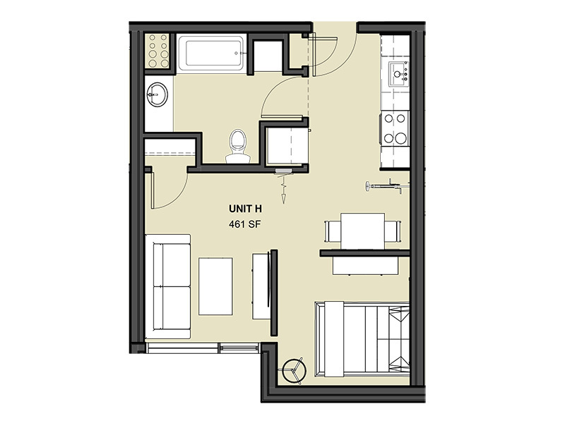 Unit H - Floorplan 1 Apartment Unit: AUCMUZApartment Model: Unit H$1,199Studio, 1 Bath, 471 sq ftAvailable November 3, 2025Unit E