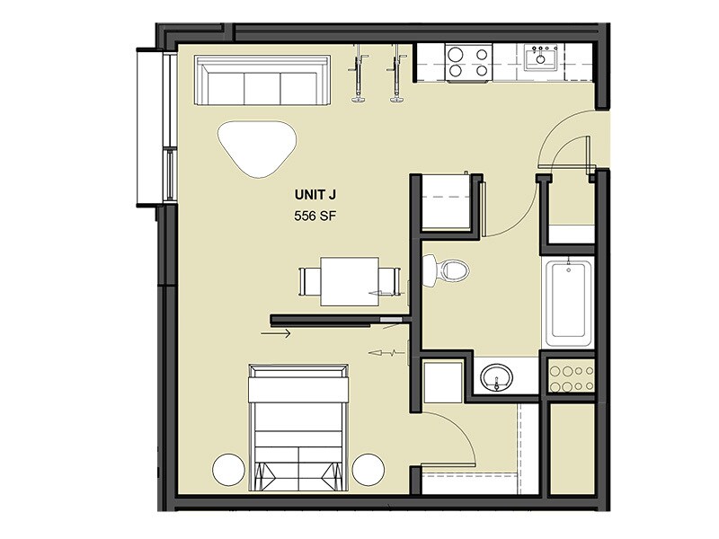 Apartment Model: Unit B$1,199Studio, 1 Bath, 394-397 sq ftAvailable Now![]()