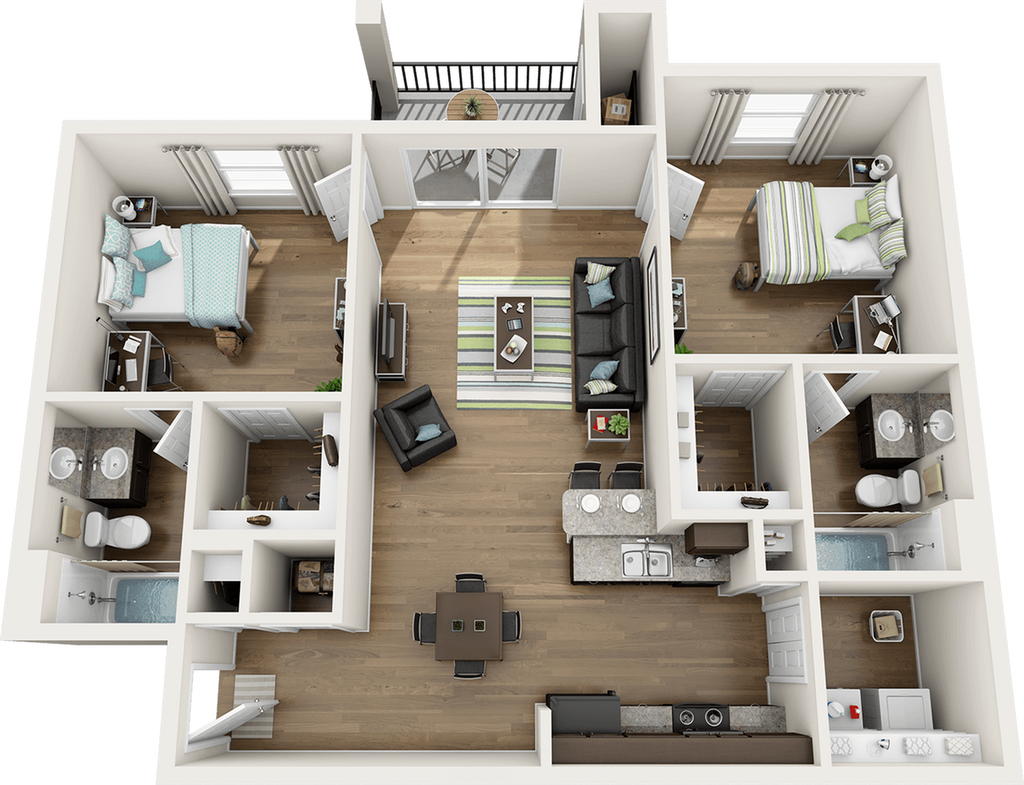 1x1 Modern - Floorplan 1 Apartment Unit: PrivateApartment Model: 1x1 Modern$1,2991 Bedroom, 1 Bath, 667 sq ftAvailable August 15, 20262 Bedrooms