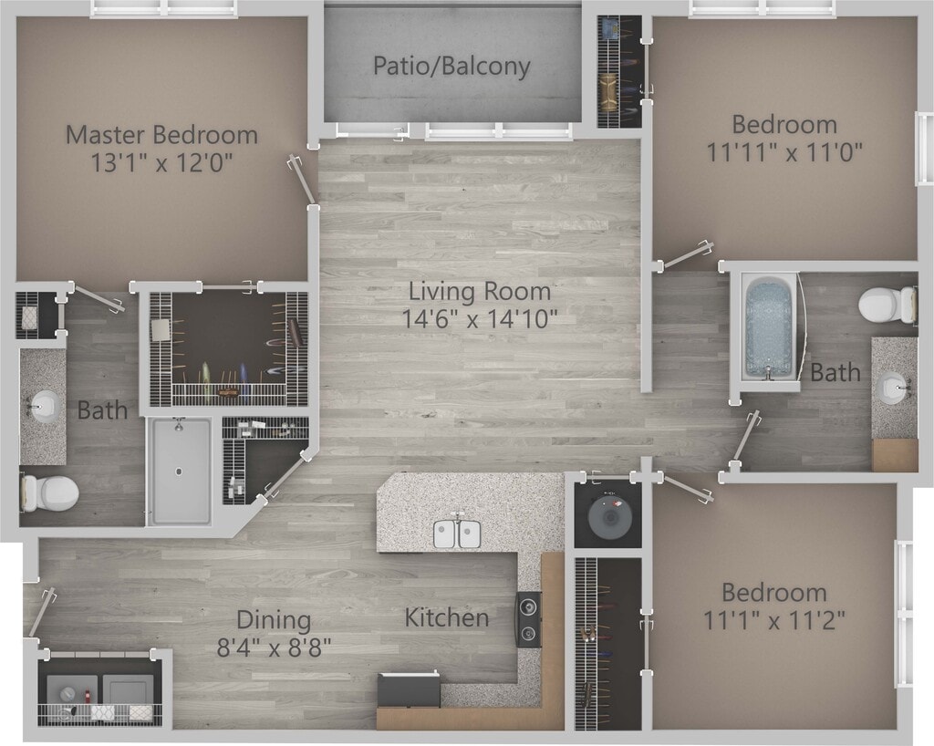 2 Beds, 2 Baths, 1505 sq ftLargest 2 BedroomThis is the largest 2 Bedroom at this PropertyModel Gallery