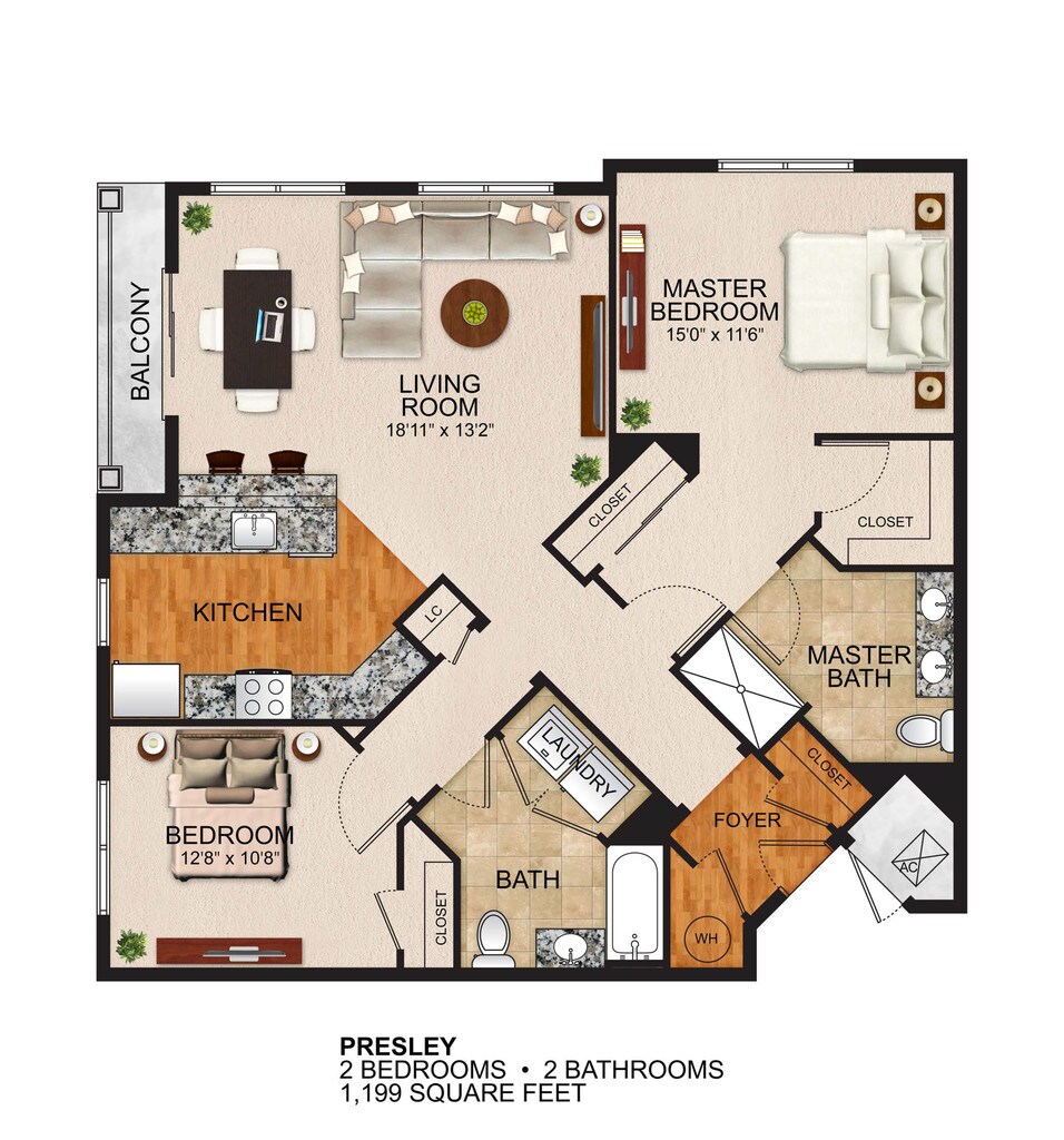 Apartment Model: PresleyFrom $2,4432 Bedroom, 2 Bath, 1199 sq ftUnavailable![]() - Presley - Floorplan 1 ![]() - Presley - Floorplan 2 - Prestige2 Beds, 2 Baths, 1305 sq ft- Model Gallery- Floorplans- Availability Details- Price - Availability Date - Unit - Sq Ft - From $2,243 - Call for Availability - Prestige - 1305 sq ft - Model Amenities and Features- Features- Air Conditioning