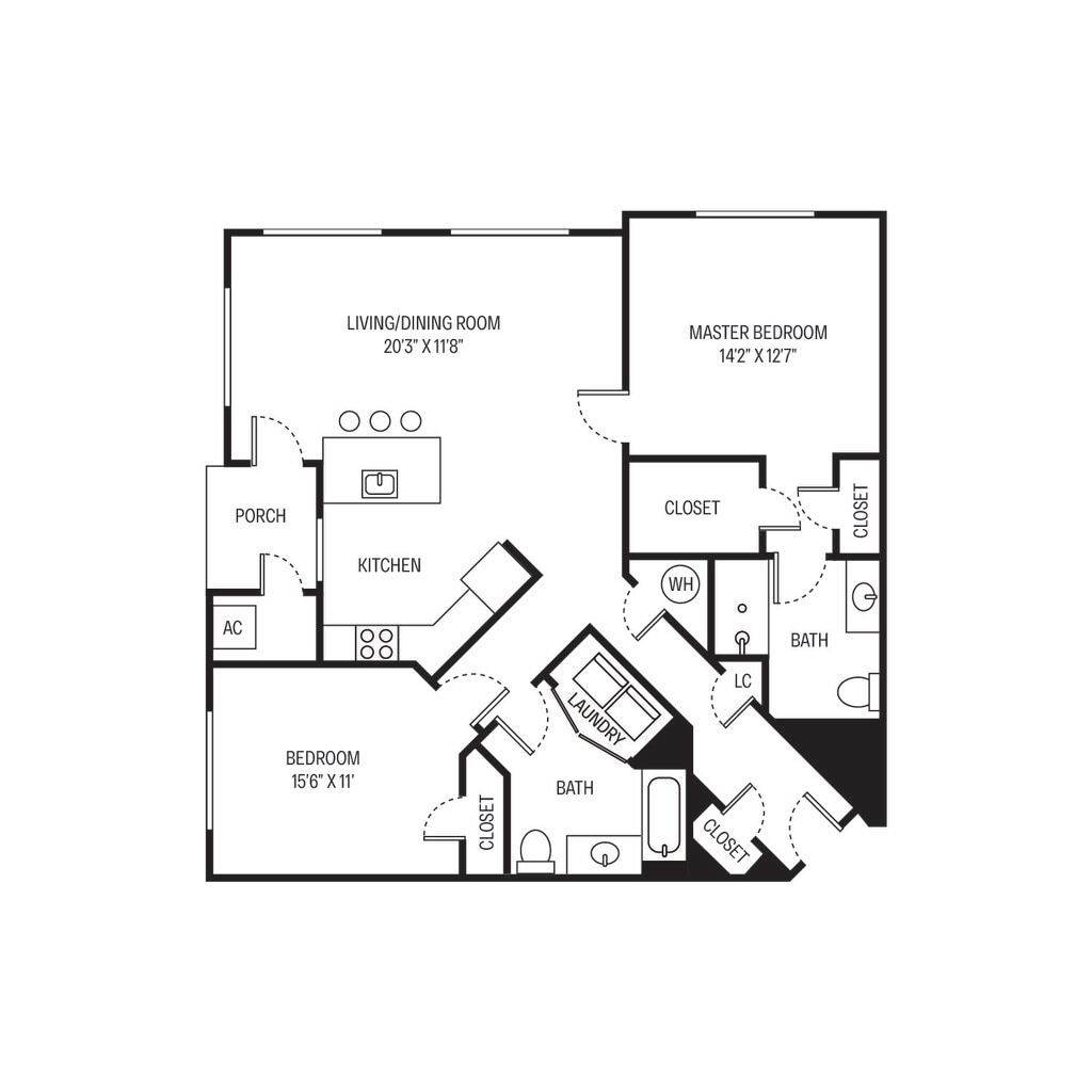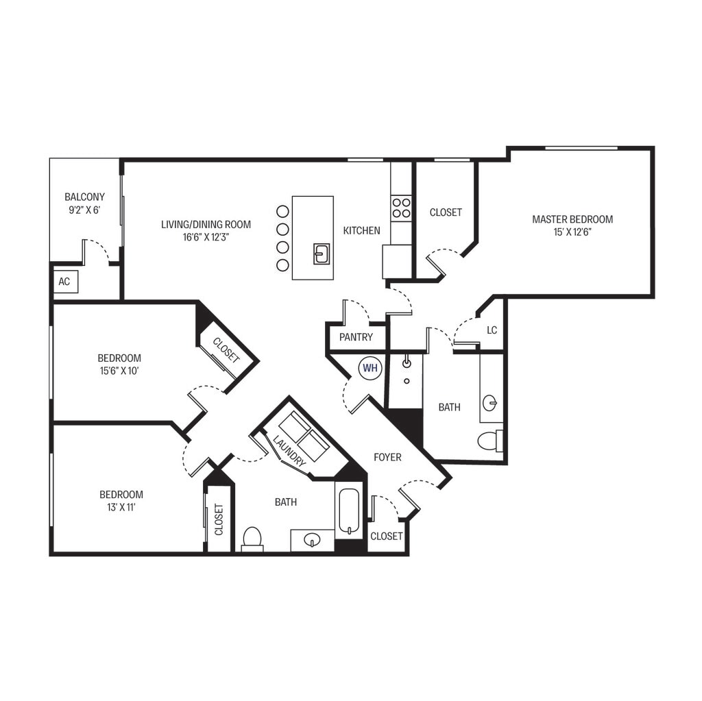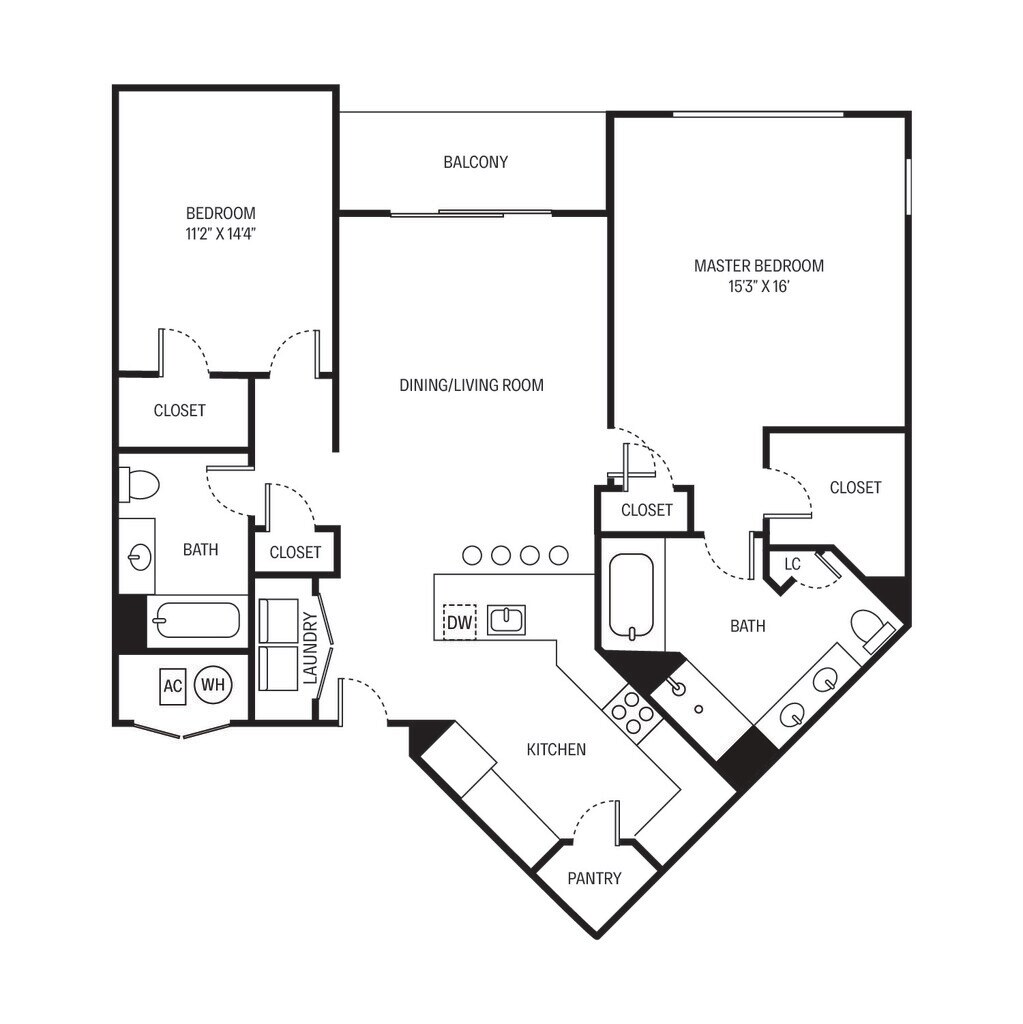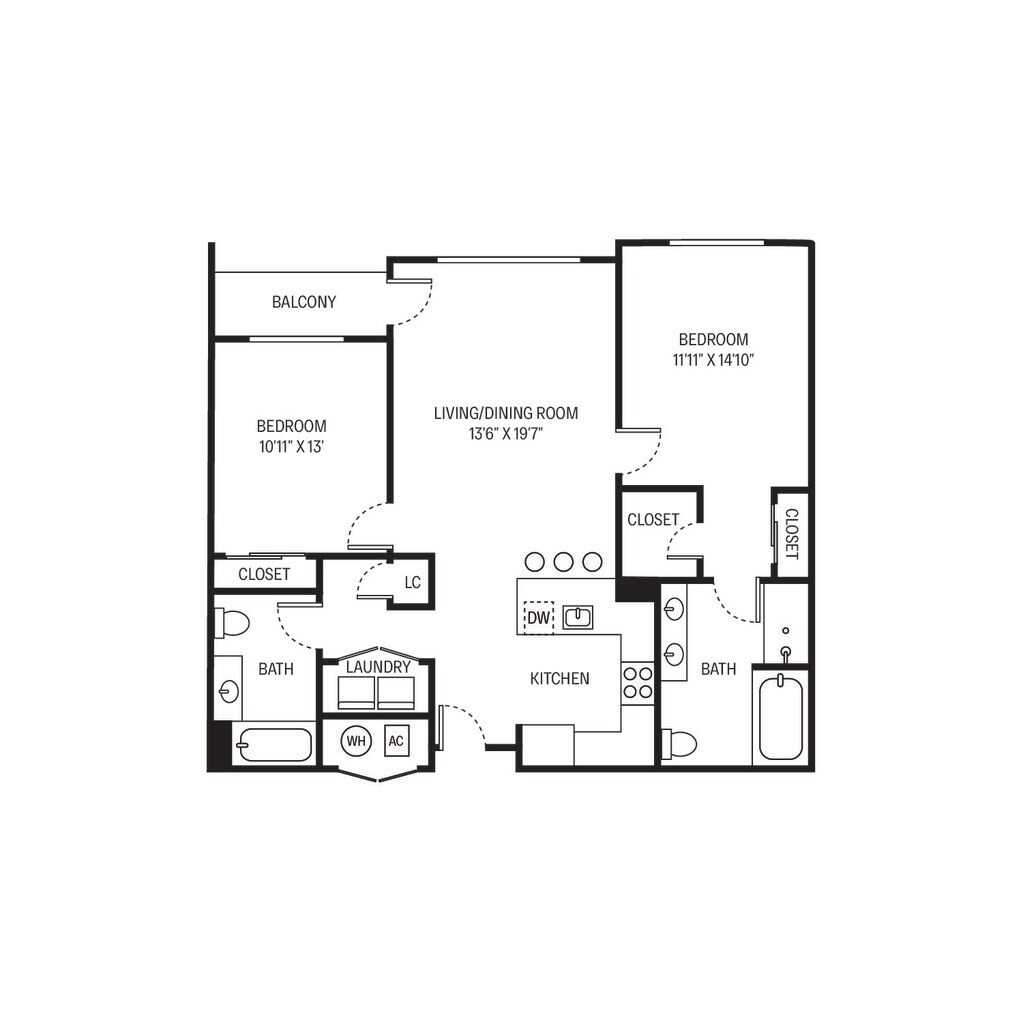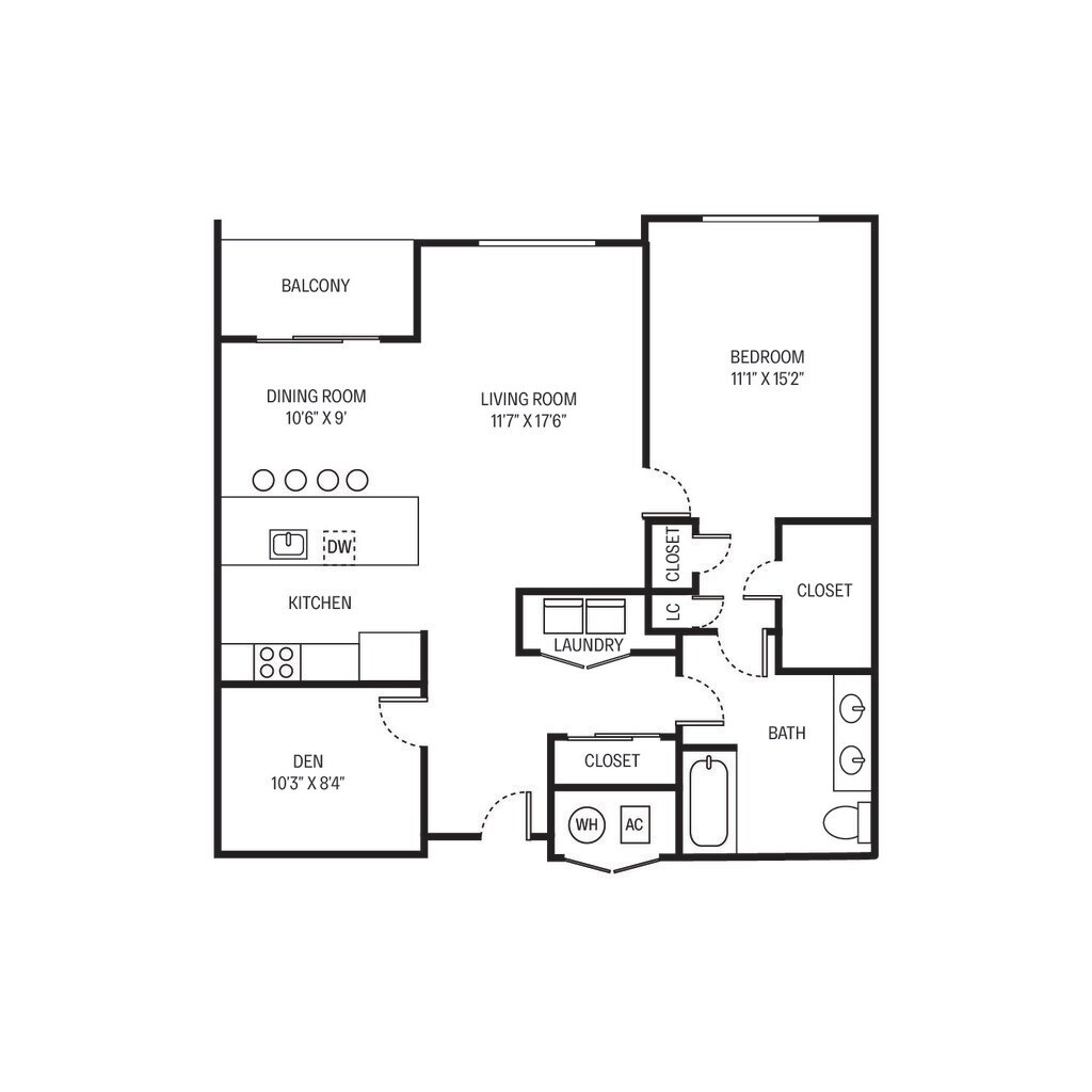 Apartment Model: VineyardFrom $1,9431 Bedroom, 1 Bath, 1098 sq ftUnavailable![]() - Vineyard - Floorplan 1
