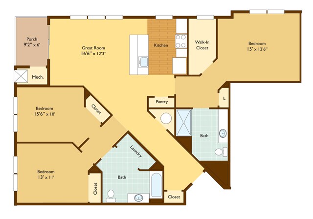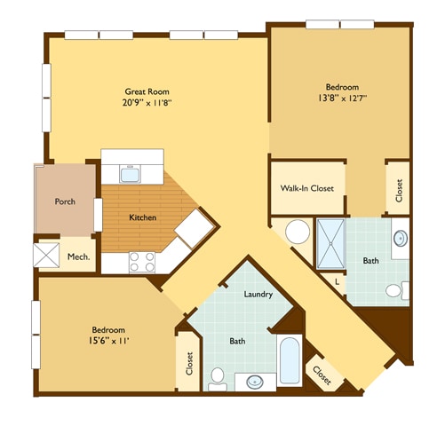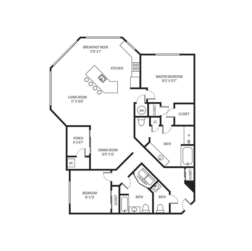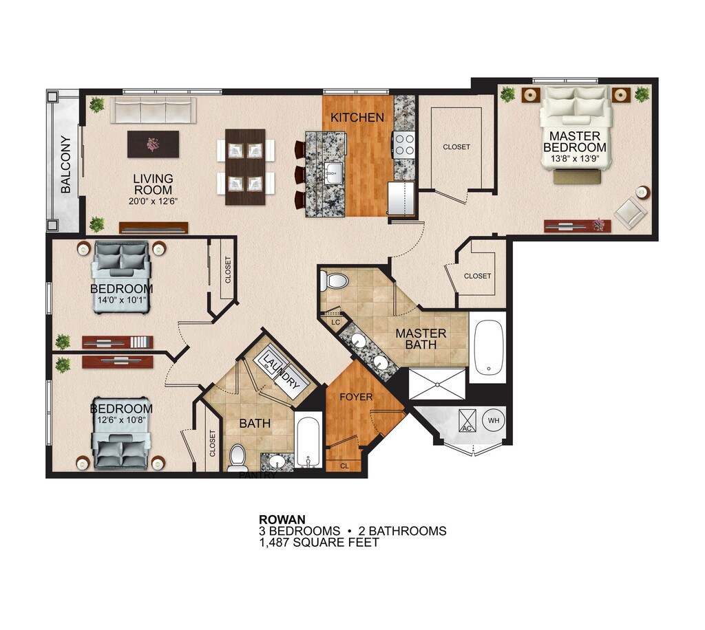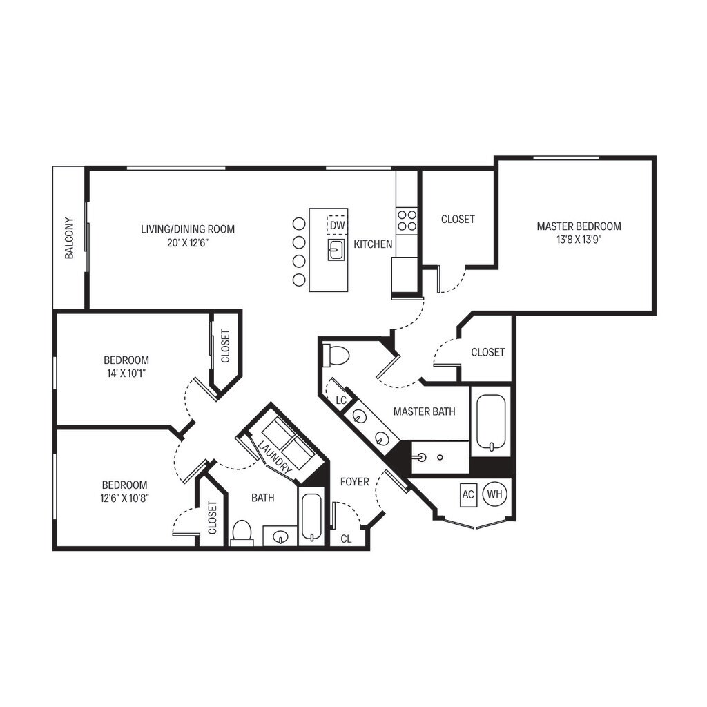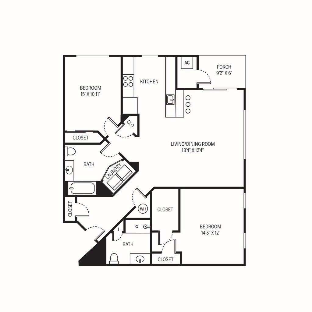 Apartment Model: VineyardFrom $1,9431 Bedroom, 1 Bath, 1098 sq ftUnavailable![]() - Vineyard - Floorplan 1