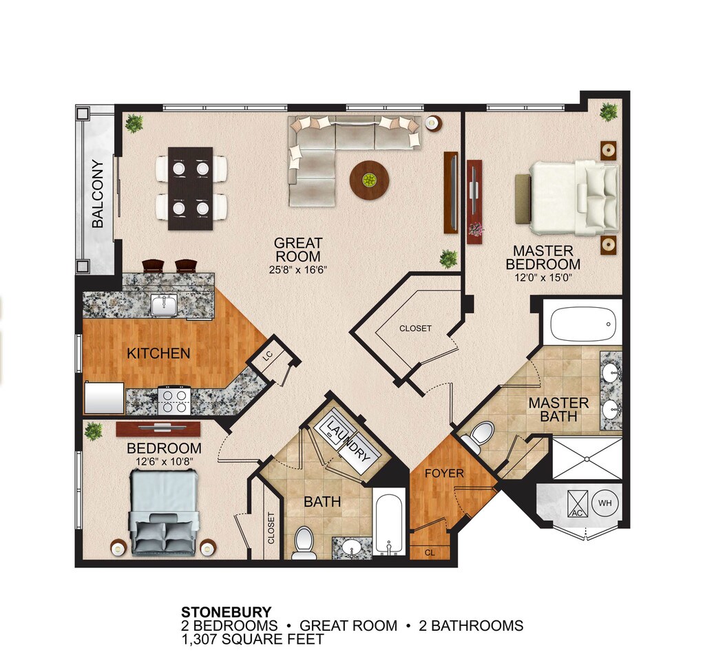Apartment Model: PrestigeFrom $2,2432 Bedroom, 2 Bath, 1305 sq ftUnavailable![]() - Prestige - Floorplan 1 - Stonebury2 Beds, 2 Baths, 1307 sq ft- Model Gallery- Floorplans- Availability Details- Price - Availability Date - Unit - Sq Ft - From $2,433 - Call for Availability - Stonebury - 1307 sq ft - Model Amenities and Features- Features- Balcony