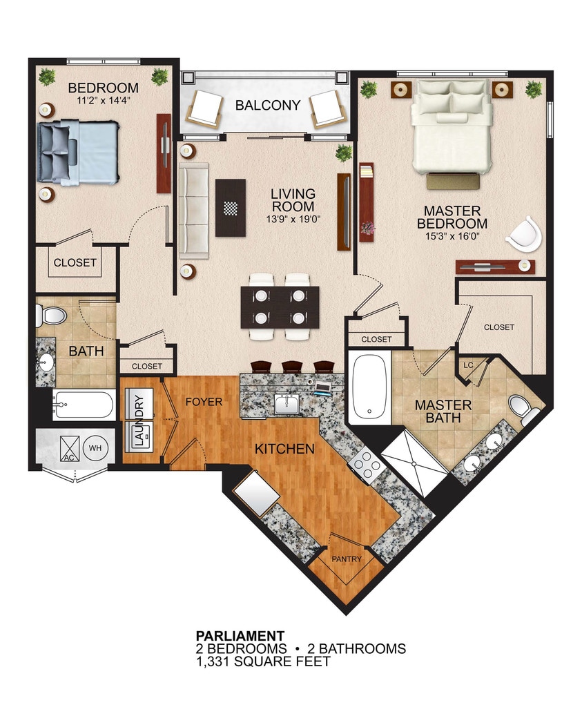 Apartment Model: ParliamentFrom $2,3932 Bedroom, 2 Bath, 1331 sq ftUnavailable![]() - Parliament - Floorplan 1 ![]() - Parliament - Floorplan 2 - Haven2 Beds, 2 Baths, 1382 sq ft- Model Gallery- Floorplans- Availability Details- Price - Availability Date - Unit - Sq Ft - From $2,445 - Call for Availability - Haven - 1382 sq ft - Model Amenities and Features- Features- Balcony