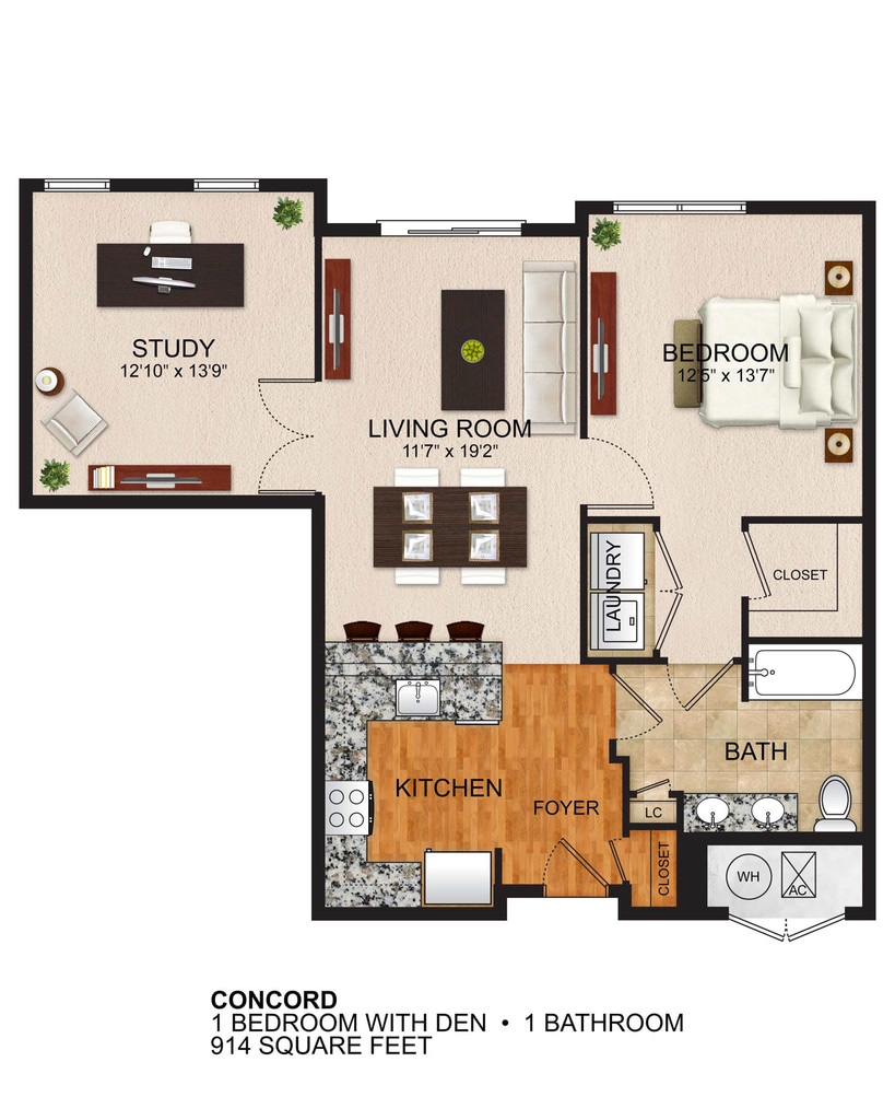 Apartment Model: PremierFrom $1,6131 Bedroom, 1 Bath, 796 sq ftUnavailable![]() - Premier - Floorplan 1 - Concord1 Bed, 1 Bath, 914 sq ft- Model Gallery- Floorplans- Availability Details- Price - Availability Date - Unit - Sq Ft - From $1,943 - Call for Availability - Concord - 914 sq ft - Model Amenities and Features- Features- Balcony