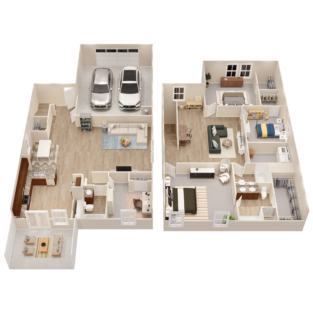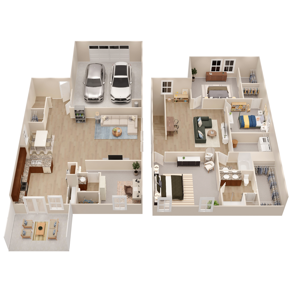 3 Beds, 2.5 Baths, 2052 sq ftAvailable NowLargest 3 BedroomThis is the largest 3 Bedroom at this PropertyModel Gallery
