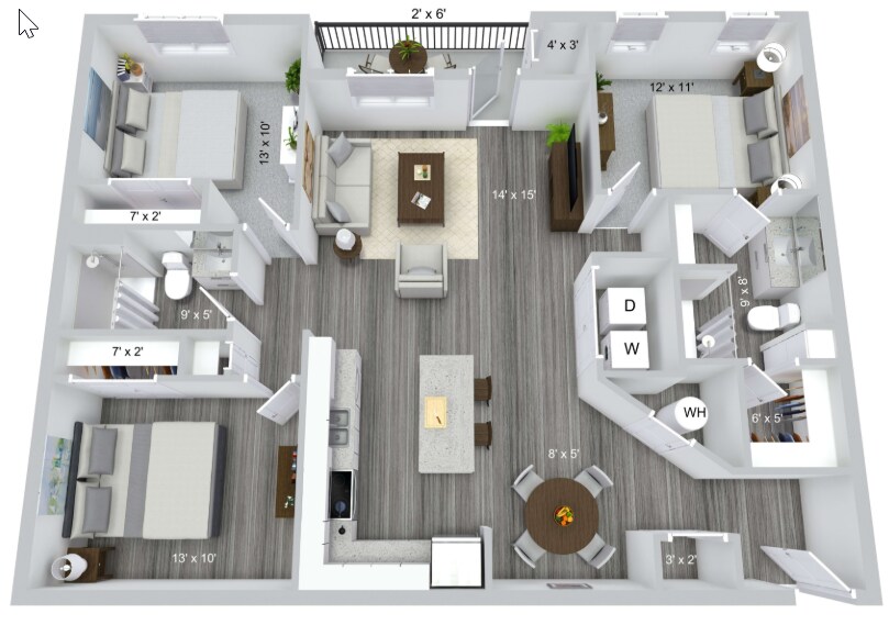 Apartment Model: Jefferson$1,7753 Bedroom, 2 Bath, 1315 sq ftAvailable December 26, 2025FloorplansPhotos![]()