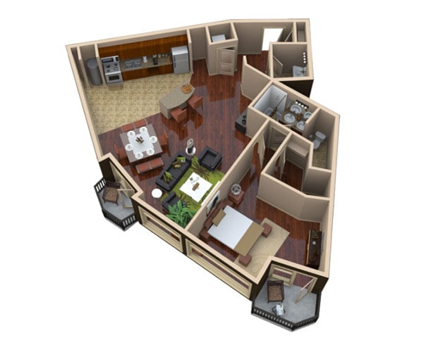 1 Bed, 1.5 Baths, 1168 sq ftModel Gallery