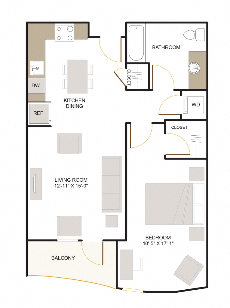 1 Bed, 1 Bath, 690 sq ftModel Gallery