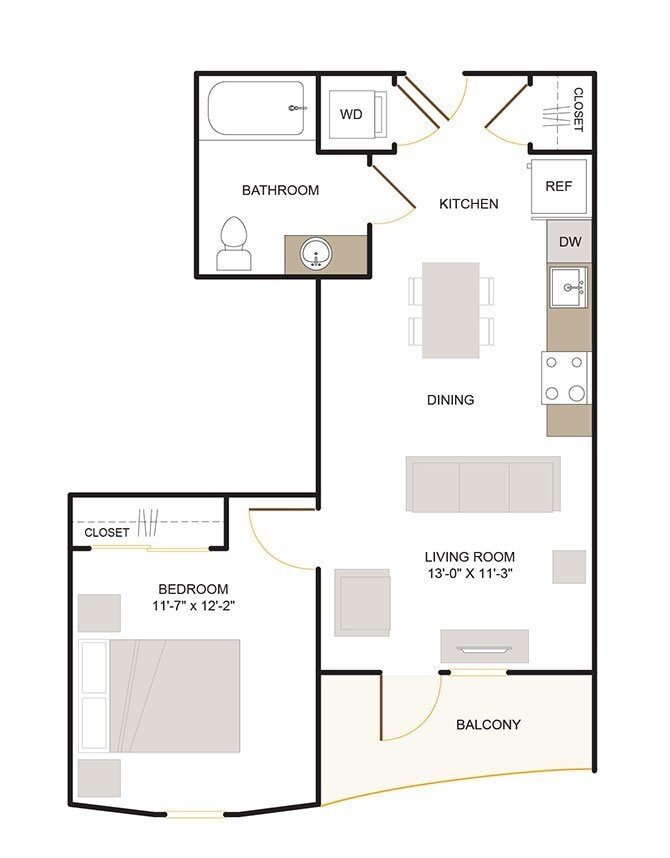 1 Bed, 1 Bath, 810 sq ftLargest 1 BedroomThis is the largest 1 Bedroom at this PropertyModel Gallery
