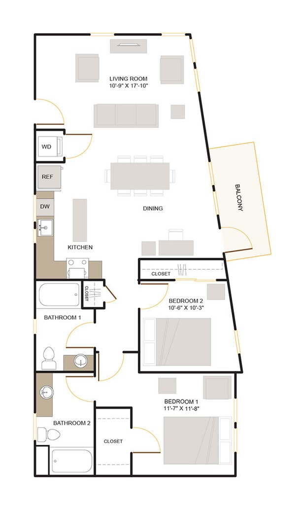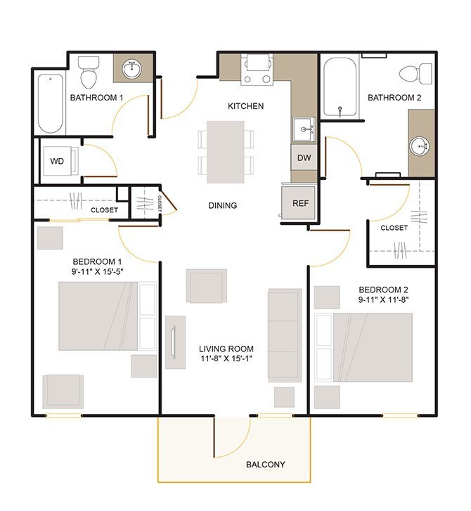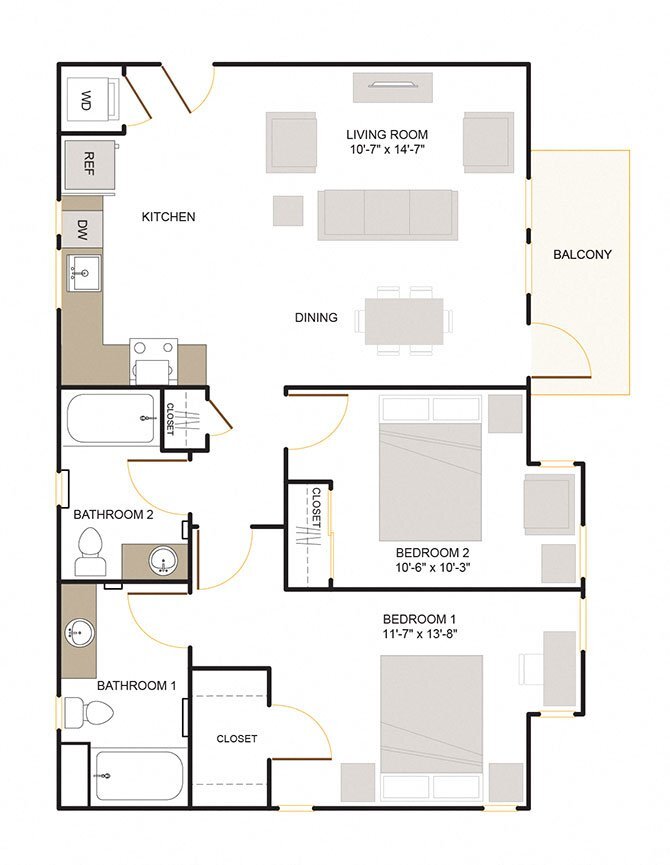2 Beds, 2 Baths, 1010 sq ftAvailable NowCheapest 2 BedroomThis is the cheapest 2 Bedroom at this PropertyModel Gallery