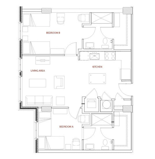 B3b-2x2 Double Occupant - Floorplan 1 B7-2x2