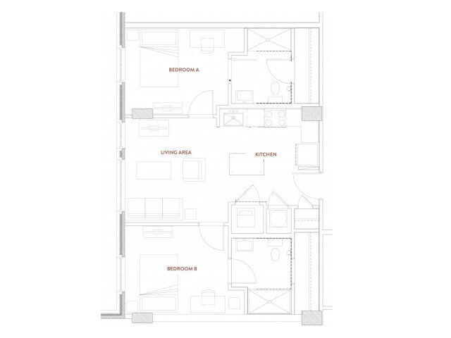 Apartment Model: B1b-2x2 Double Occupant2 Bedroom, 2 Bath, 792 sq ftUnavailable![]()
