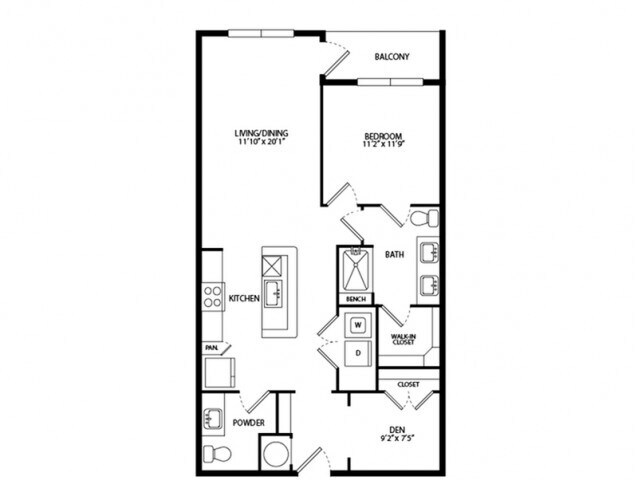 Apartment Model: A1DFrom $1,7611 Bedroom, 1 Bath, 632 sq ftAvailable NowFloor plans are artist's rendering. All dimensions are approximate. Actual product and specifications may vary in dimension or detail. Not all features are available in every rental home. Prices and availability are subject to change. Base rent is based on monthly frequency. Additional fees may apply, such as but not limited to package delivery, trash, water, amenities, etc. Deposits vary. Please see a representative for details.