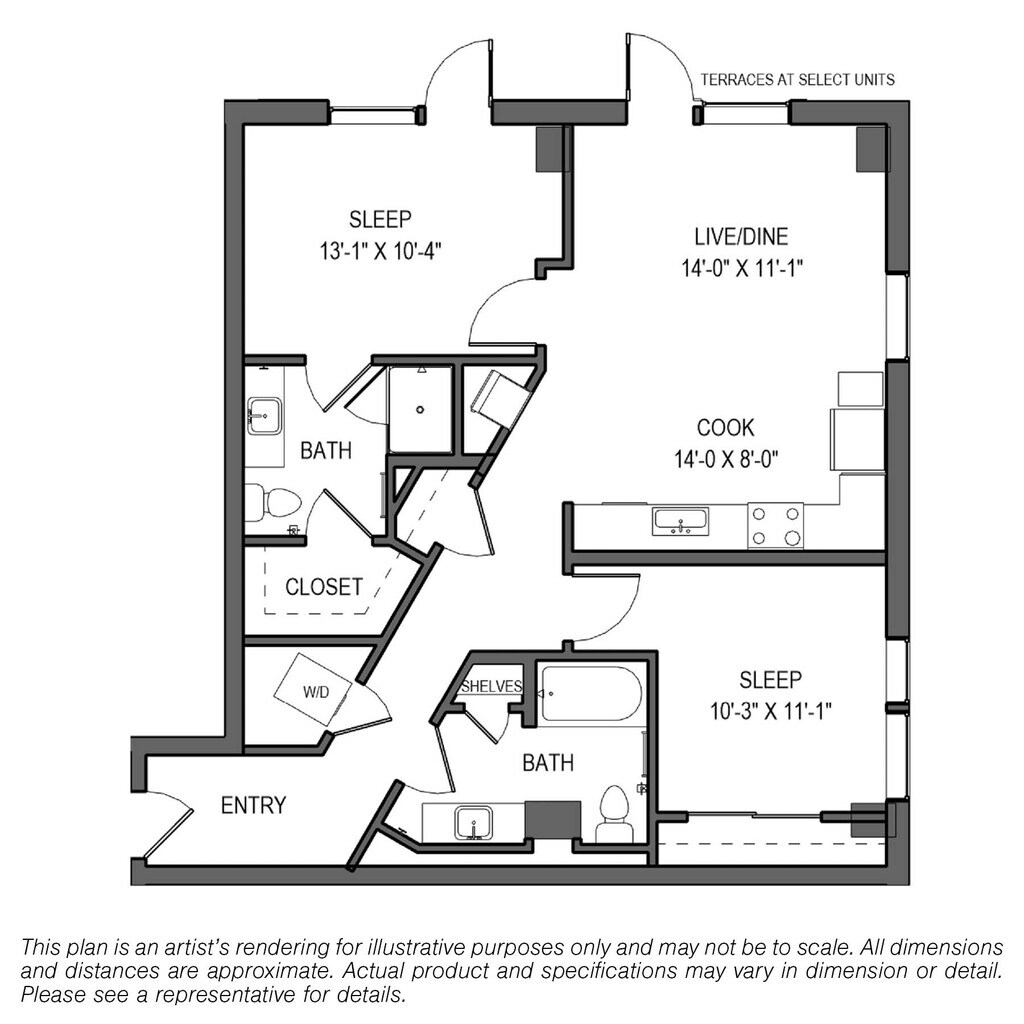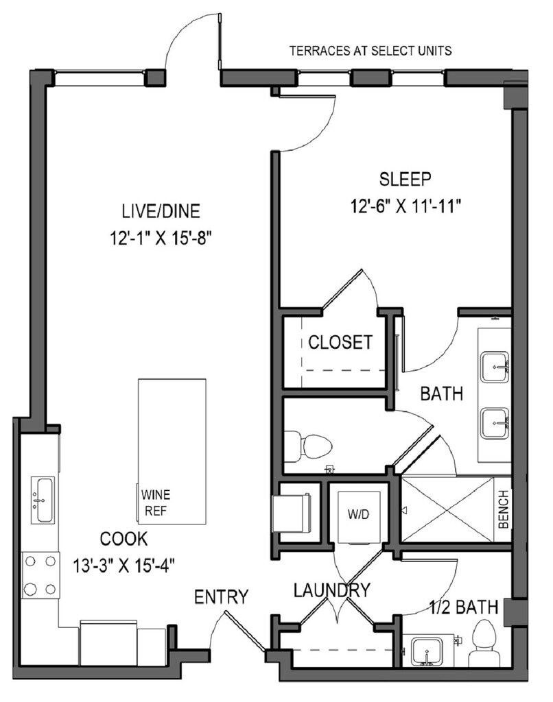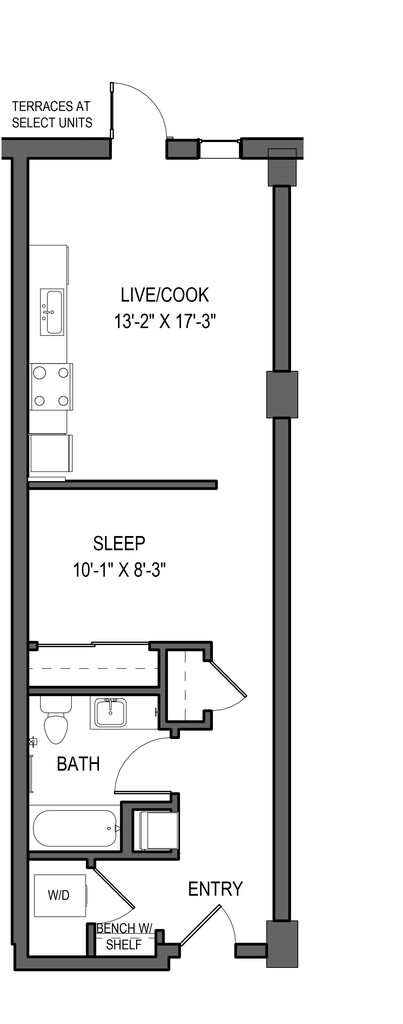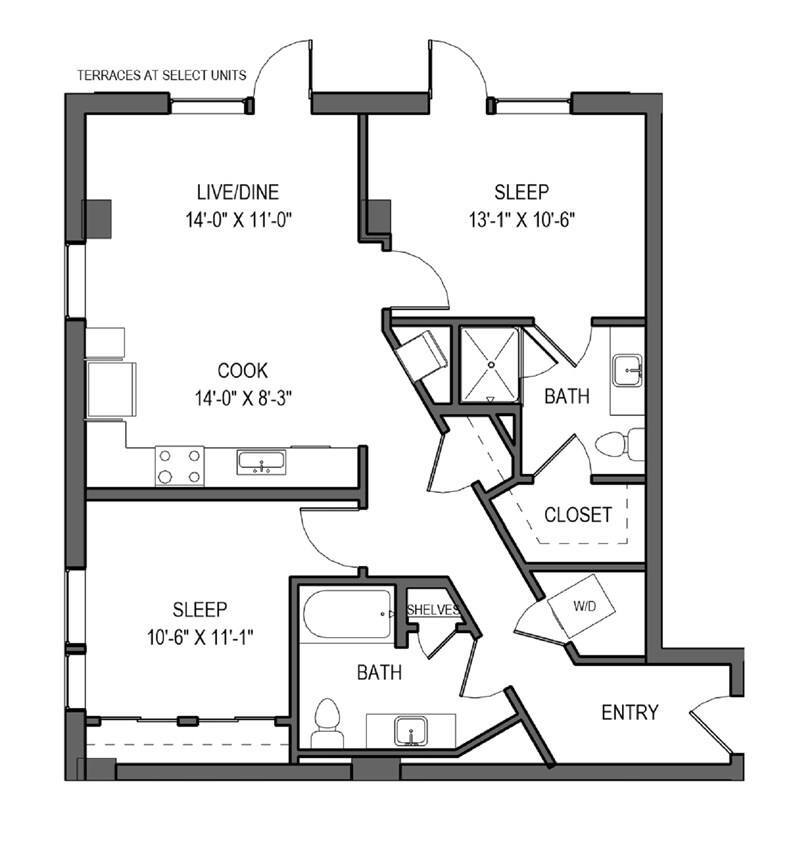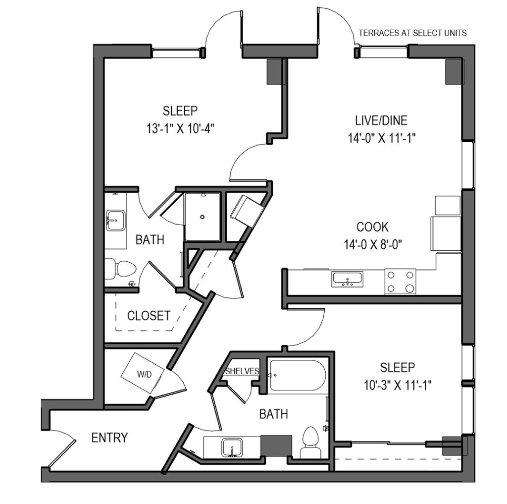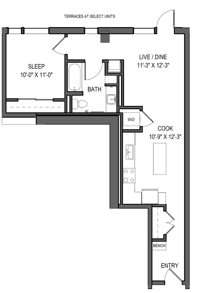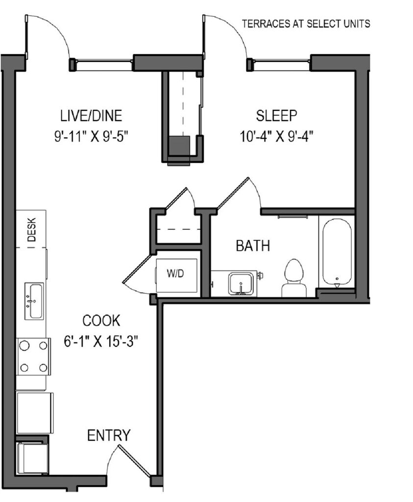 Studio, 1 Bath, 605 sq ftAvailable NowModel Gallery
