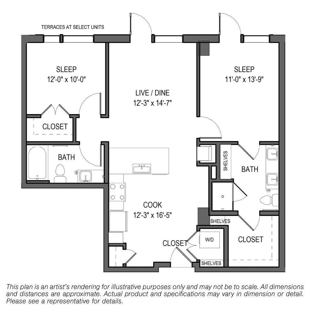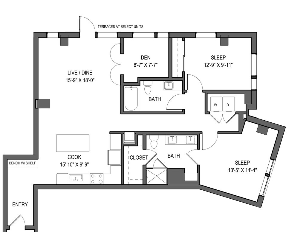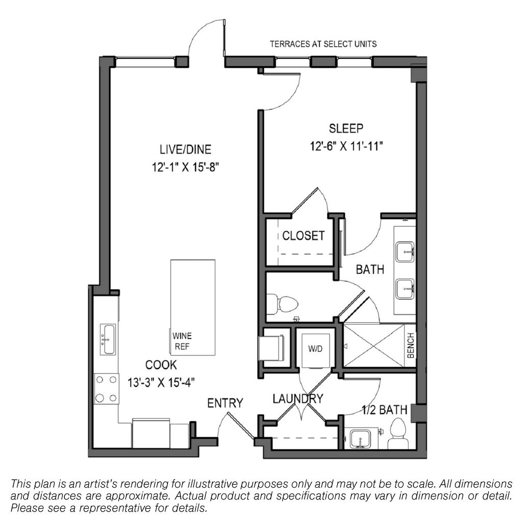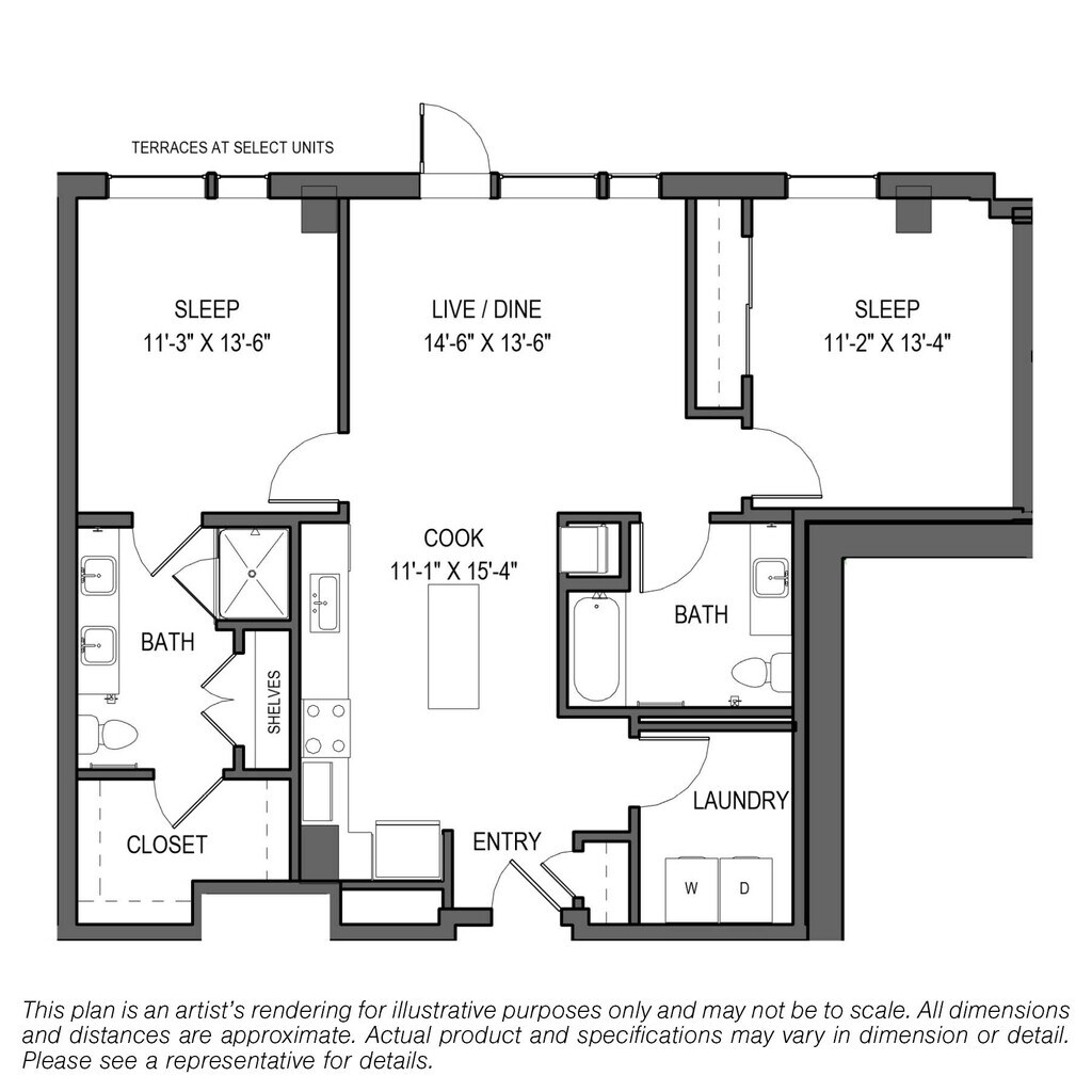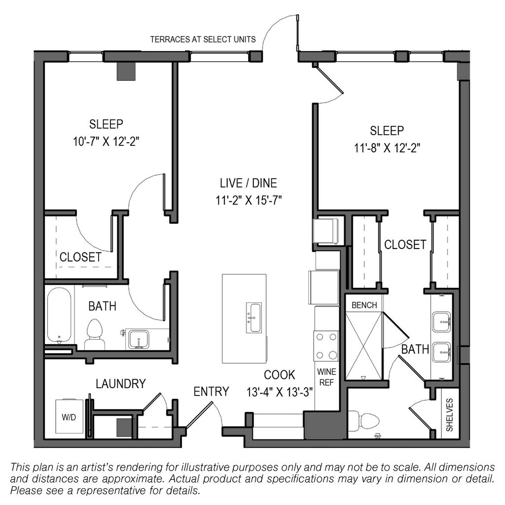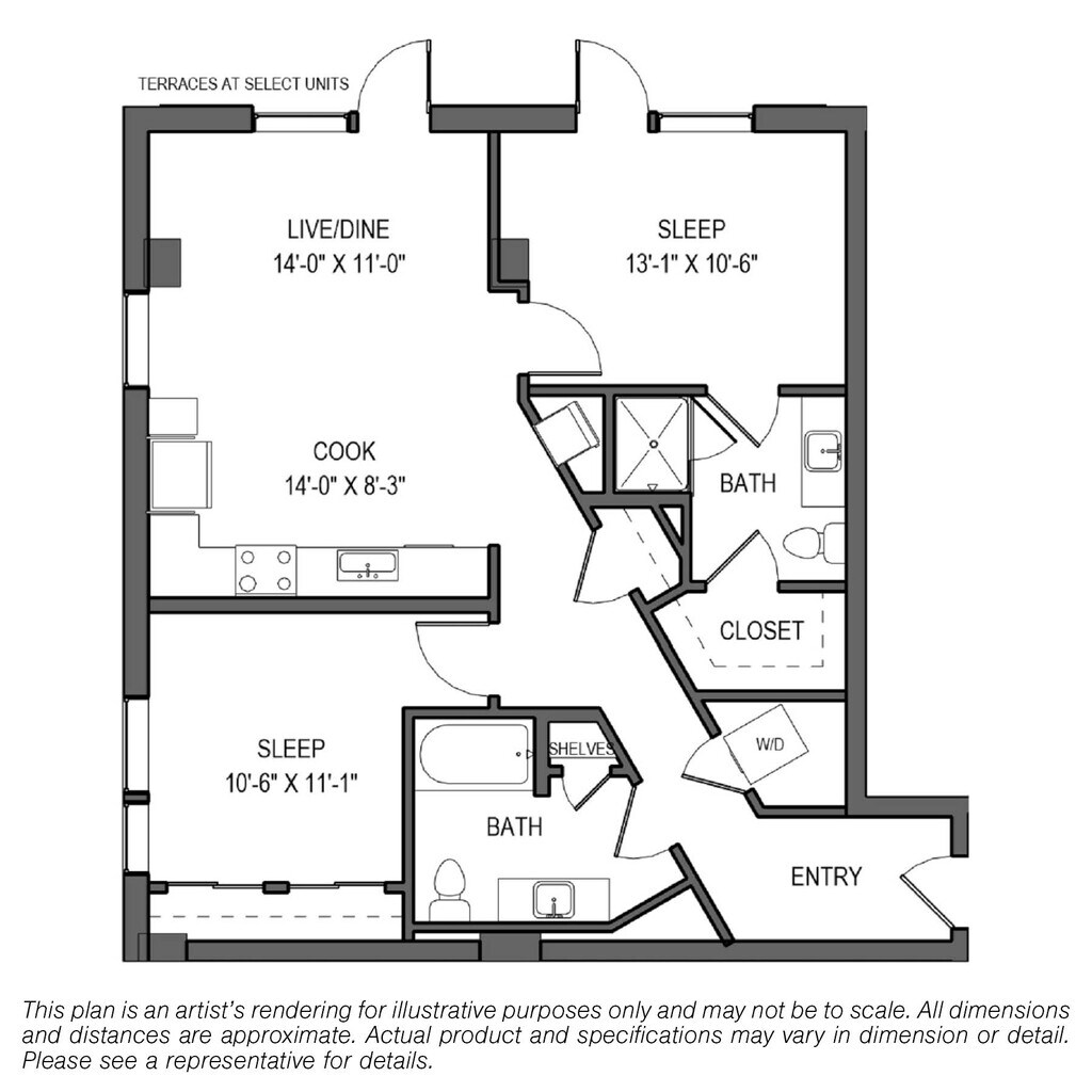 Studio, 1 Bath, 605 sq ftAvailable NowModel Gallery