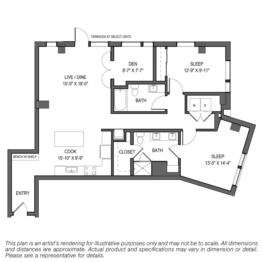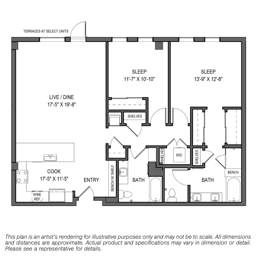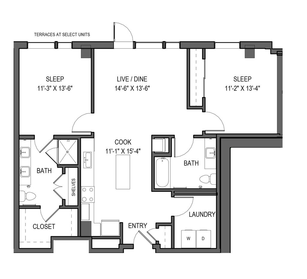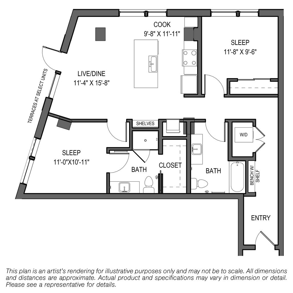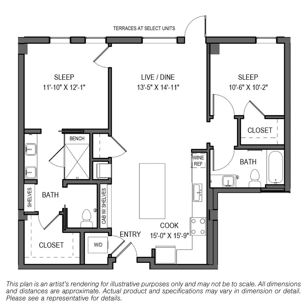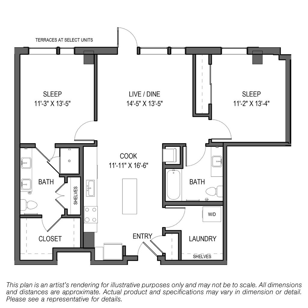Studio, 1 Bath, 605 sq ftAvailable NowModel Gallery