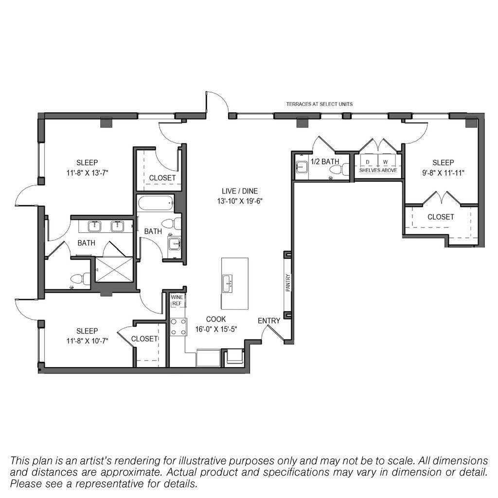 S1 - Floorplan 1 Floor plans are artist's rendering. All dimensions are approximate. Actual product and specifications may vary in dimension or detail. Not all features are available in every rental home. Prices and availability are subject to change. Base rent is based on monthly frequency. Additional fees may apply, such as but not limited to package delivery, trash, water, amenities, etc. Deposits vary. Please see a representative for details.