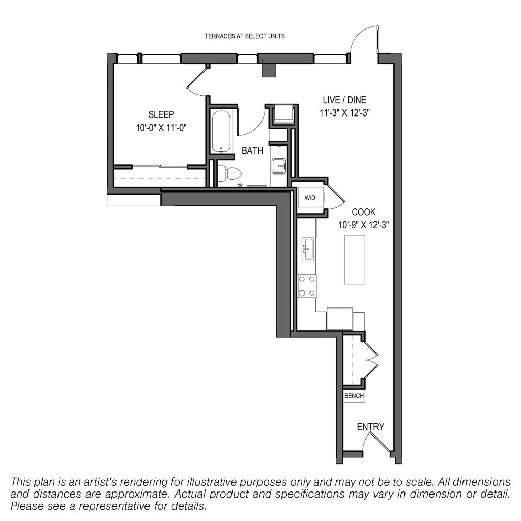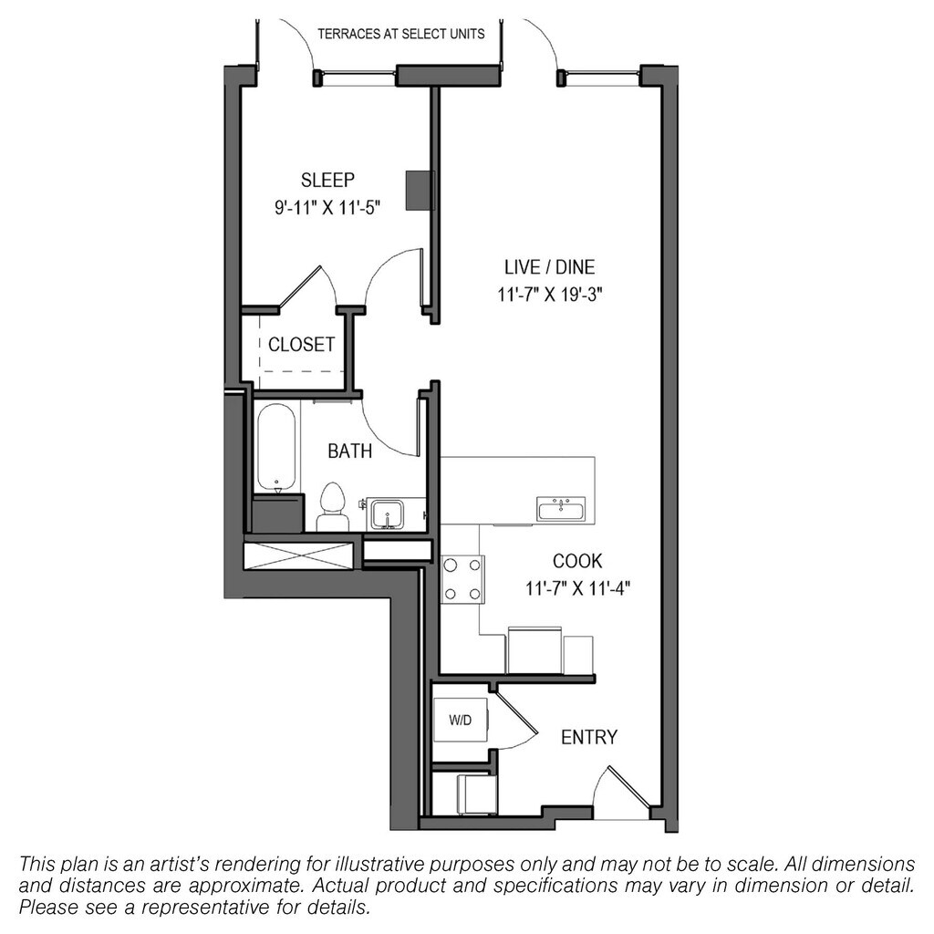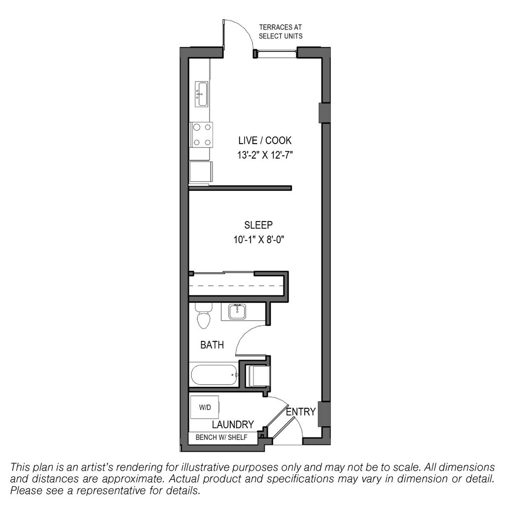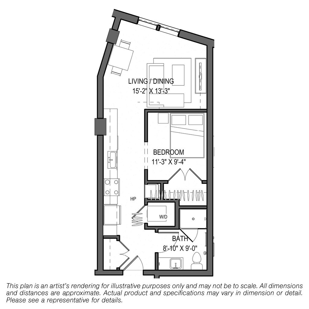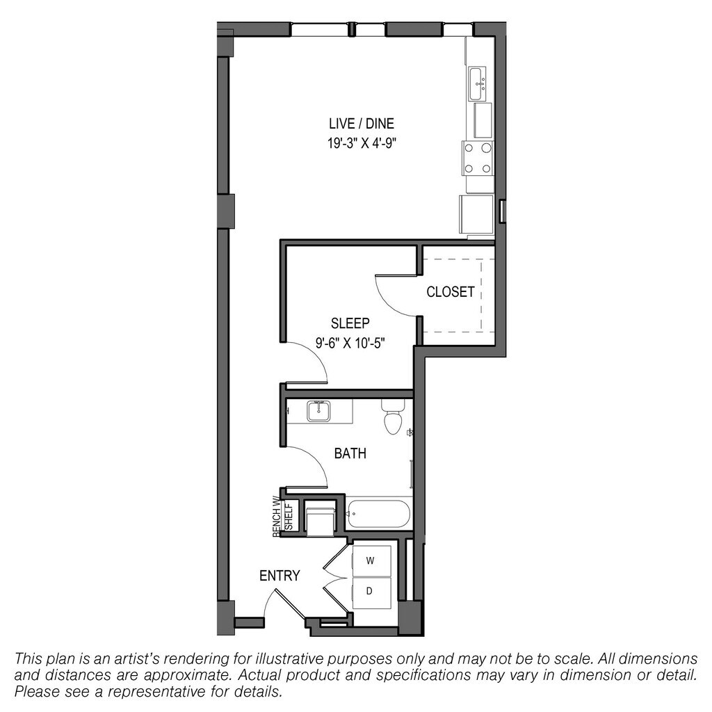 Apartment Model: S1From $1,674Studio, 1 Bath, 540 sq ftAvailable NowFloor plans are artist's rendering. All dimensions are approximate. Actual product and specifications may vary in dimension or detail. Not all features are available in every rental home. Prices and availability are subject to change. Base rent is based on monthly frequency. Additional fees may apply, such as but not limited to package delivery, trash, water, amenities, etc. Deposits vary. Please see a representative for details.