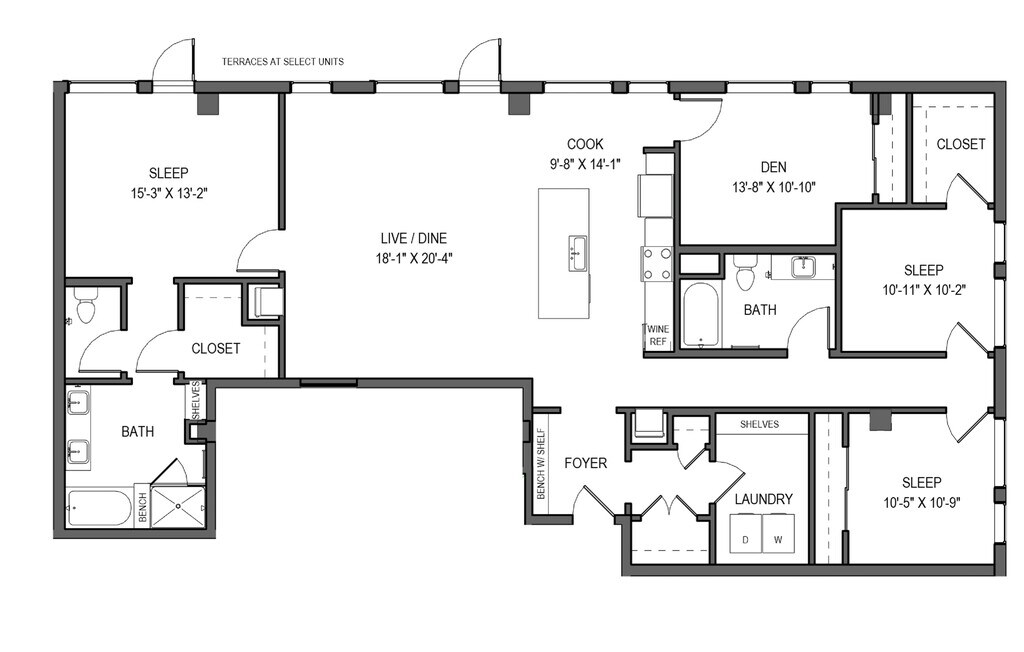 Studio to 3 Bedroom Apartments at FoundryLine currently range from $1,599 to $6,225