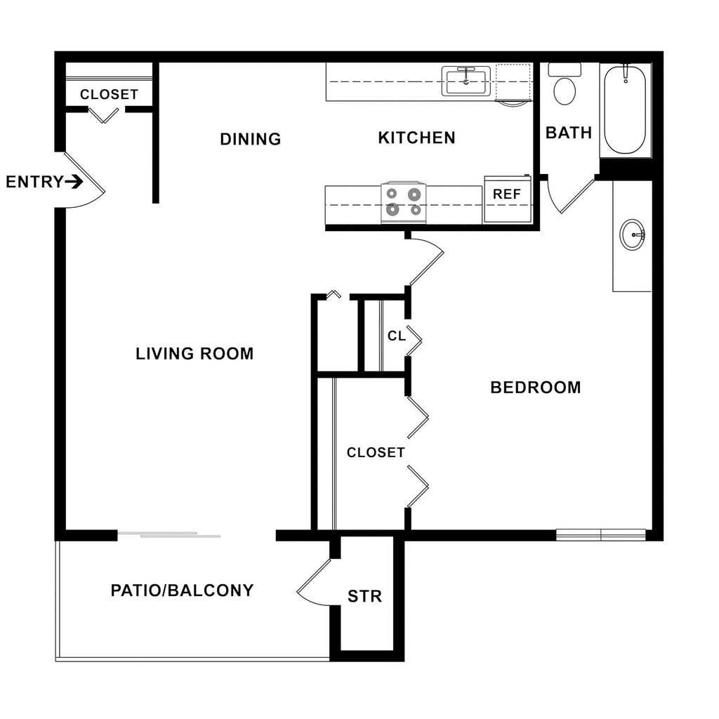 1 Bedroom 1 Bath - Floorplan 1 ![]()
