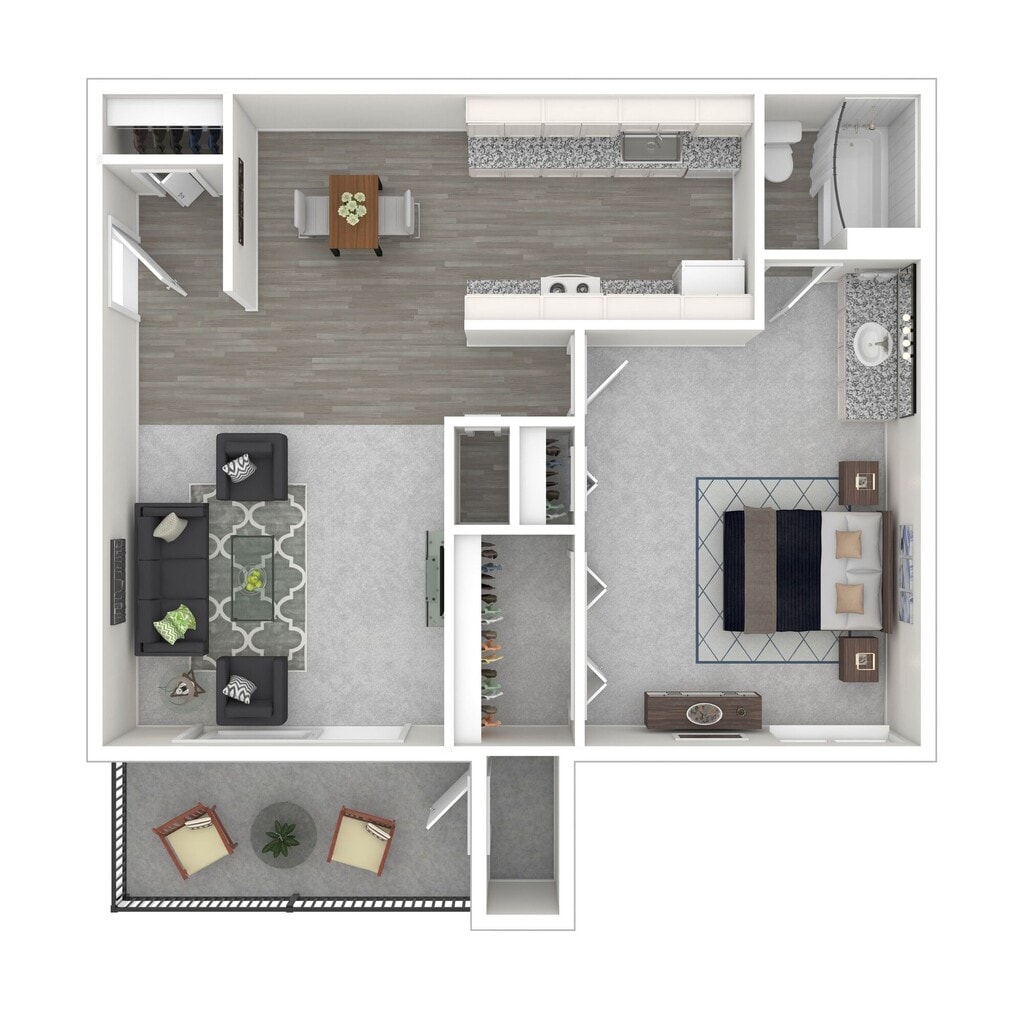 1 Bed, 1 Bath, 628 sq ftModel Gallery