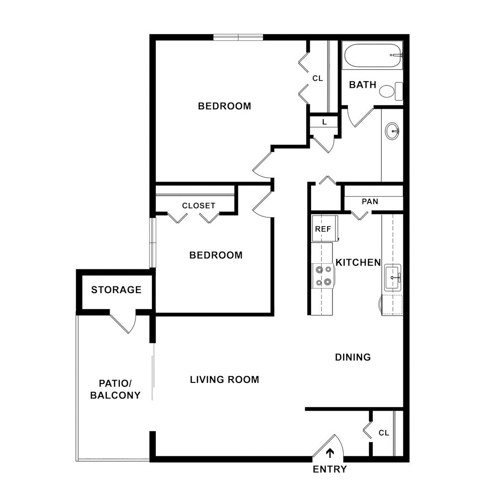 1 Bedroom 1 Bath - Floorplan 3 2 Bedrooms