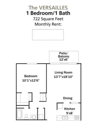 Apartment Model: VersaillesFrom $8151 Bedroom, 1 Bath, 722 sq ftAvailable Now![]()