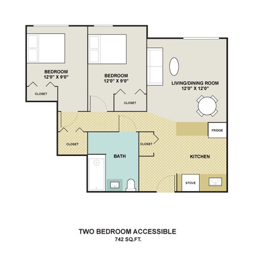 1 Bed 1 Bath (HC) - Floorplan 1 2 Bedrooms