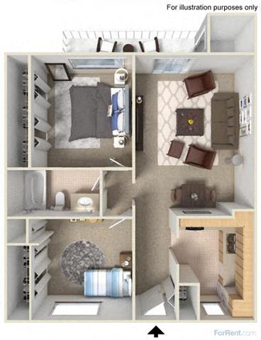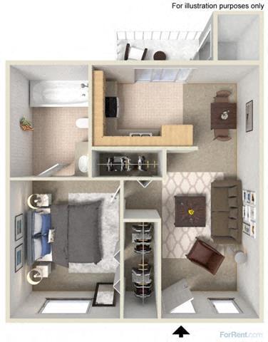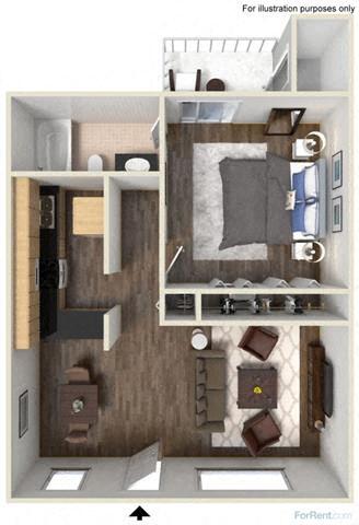 Apartment Model: One Bedroom MidFrom $8751 Bedroom, 1 Bath, 577 sq ftAvailable NowFloor plans are artist's rendering. All dimensions are approximate. Actual product and specifications may vary in dimension or detail. Not all features are available in every rental home. Prices and availability are subject to change. Base rent is based on monthly frequency. Additional fees may apply, such as but not limited to package delivery, trash, water, amenities, etc. Deposits vary. Please see a representative for details.